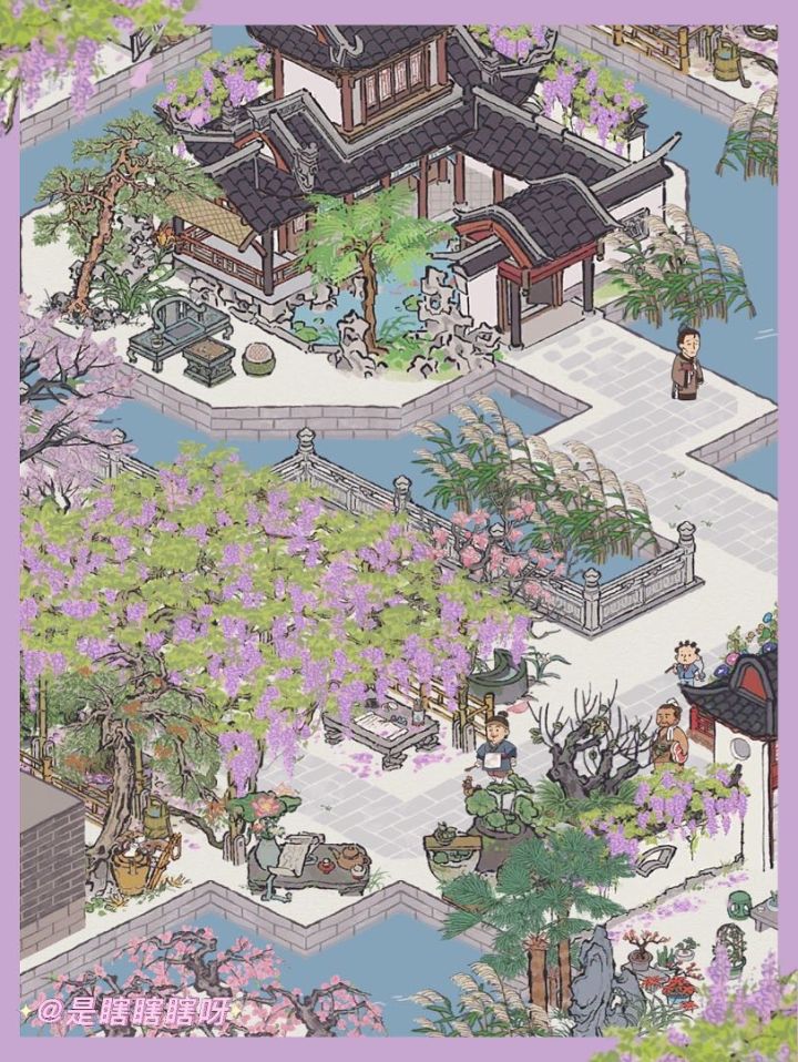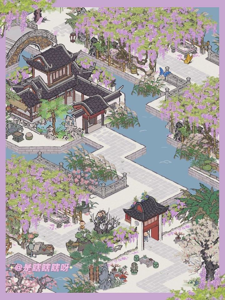 【🌴苏州府·宅邸春景(附地基)】裁霞缀绮光相乱,剪雨萦烟态转深。紫雪丰庭长不扫,闲抛簪组对清吟。🌿布局地点——落叶坞 | 鸢尾坞 | 凤梧坞🦋关于文藤——在忠王府东路戏厅南部庭院内,有紫藤一架。紫藤旁还有一块石碑,上面刻有江苏巡抚端方题词“文衡山先生手植藤”。紫藤为明代著名书画家文徵明(号衡山)所植,雅称“文藤”。“文藤”已有四百八十多年的历史,长期与拙政园宝珠山茶共享盛名,
