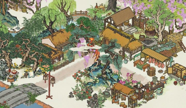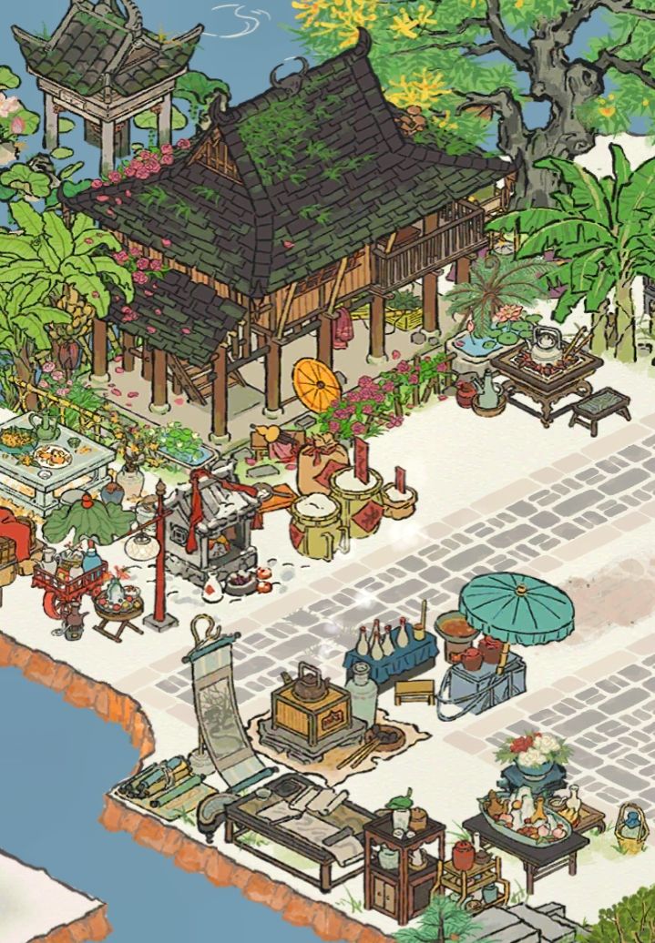 仓库布局思路:可以试着把它与屋顶颜色相同的建筑放在一起,或者找一下破败感的建筑进行搭配,更甚之可以把两个丑的放在一起反而有时会出现负负得正的效果哦!