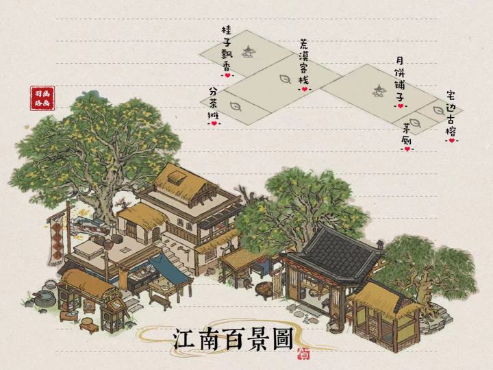 把鸡鸣山亢宿通了以后拿到了荒漠客栈发现和严贪官兑换的桂子飘香很配昨天又和猴子换了月饼铺子感觉可以凑一起翻了翻不记得哪里来的分茶摊颜色挺接近还有个一直无从下手的茅厕!配个宅边古榕就可以容忍了😌挺喜欢这种小荒野的感觉,你们怎么看?