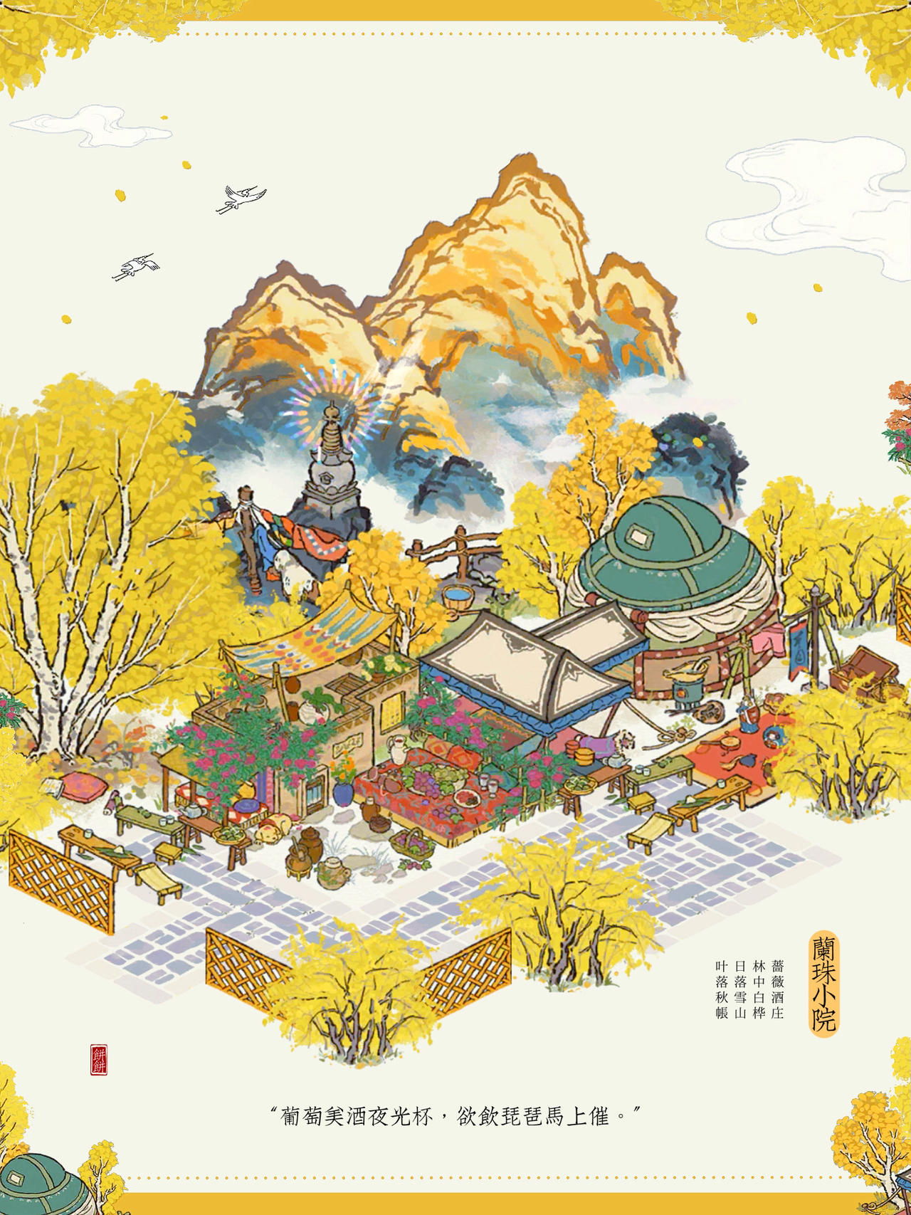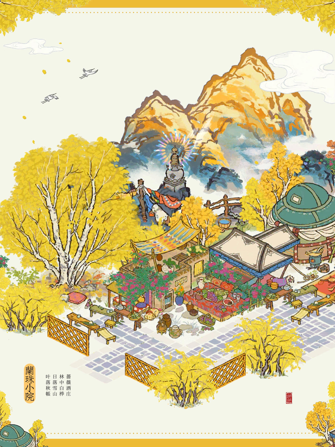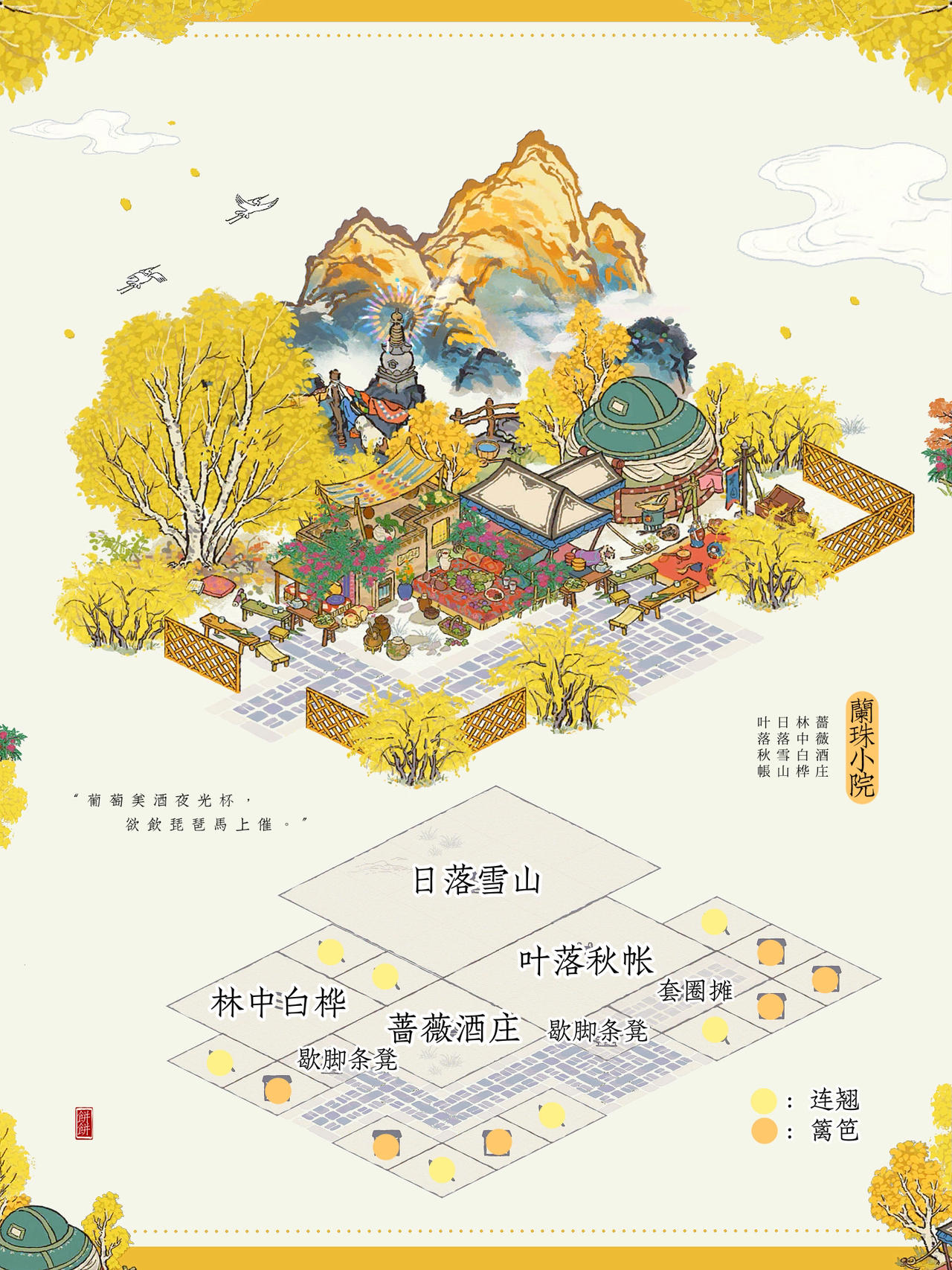 🌙江南百景图|给贺兰珠的小院子🍃布局主要建筑:蔷薇酒庄、林中白桦、叶落秋帐、日落雪山#游戏安利#今天游戏圈发生了啥#噗噜噜实验室#游戏推荐#游戏种草计划