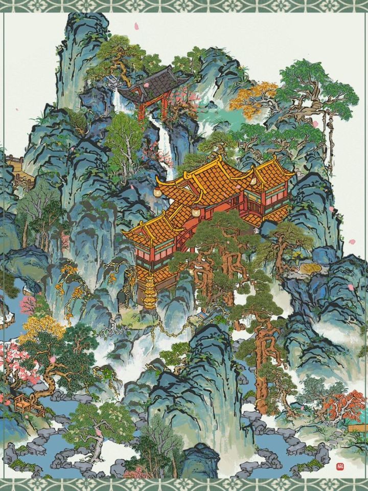江南百景图|重楼飞阁布局—“落霞与孤鹜齐飞,秋水共长天一色。”