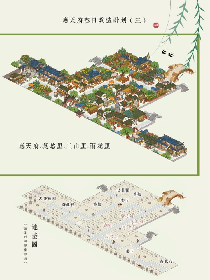 🍃江南百景图|应天街景·仿《清明上河图》🌷应天府春日改造计划(三)✨应天府·莫愁里·三山里·雨花里(满足财神雕像加成)