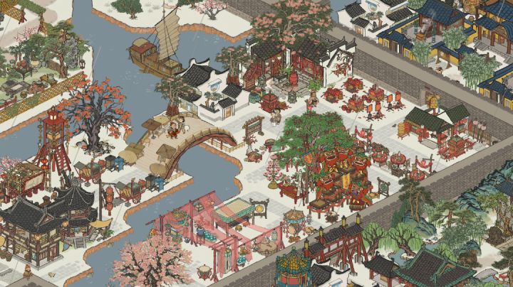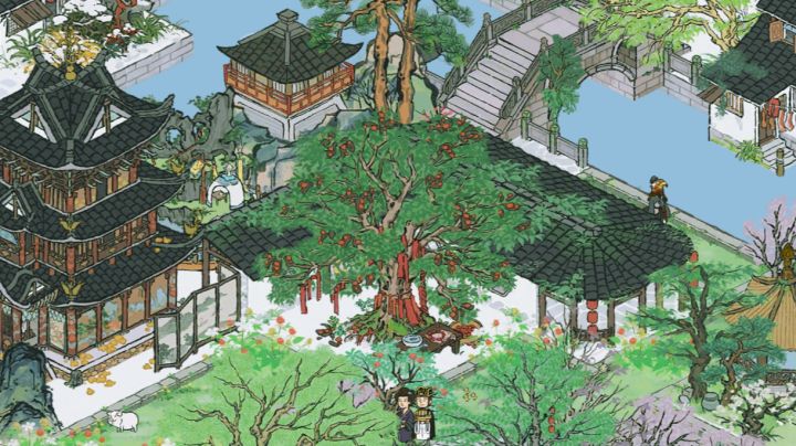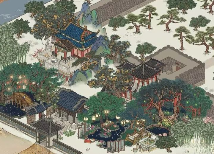 涉及区域:桃花坞、茶蘼坞、红枫坞(完全没想到苏州将会是我第一个开完全城地皮的城市)主要建筑靠七夕活动获得(零氪玩家狂喜)最相思这棵树和月老祠真的很搭!由于我更想布置出一个月老庙的感觉,所以使用了铸钱所模仿进入庙门楼子的感觉(带入丰富的想象力)旁边的茶楼和勾栏感觉有些简陋,暂时没有想好到好的替代(捉襟见肘的知府QAQ)(突然间想展示一下贫穷知府拥挤的雕像布局是怎么回事Σ(っ °Д °;)っ