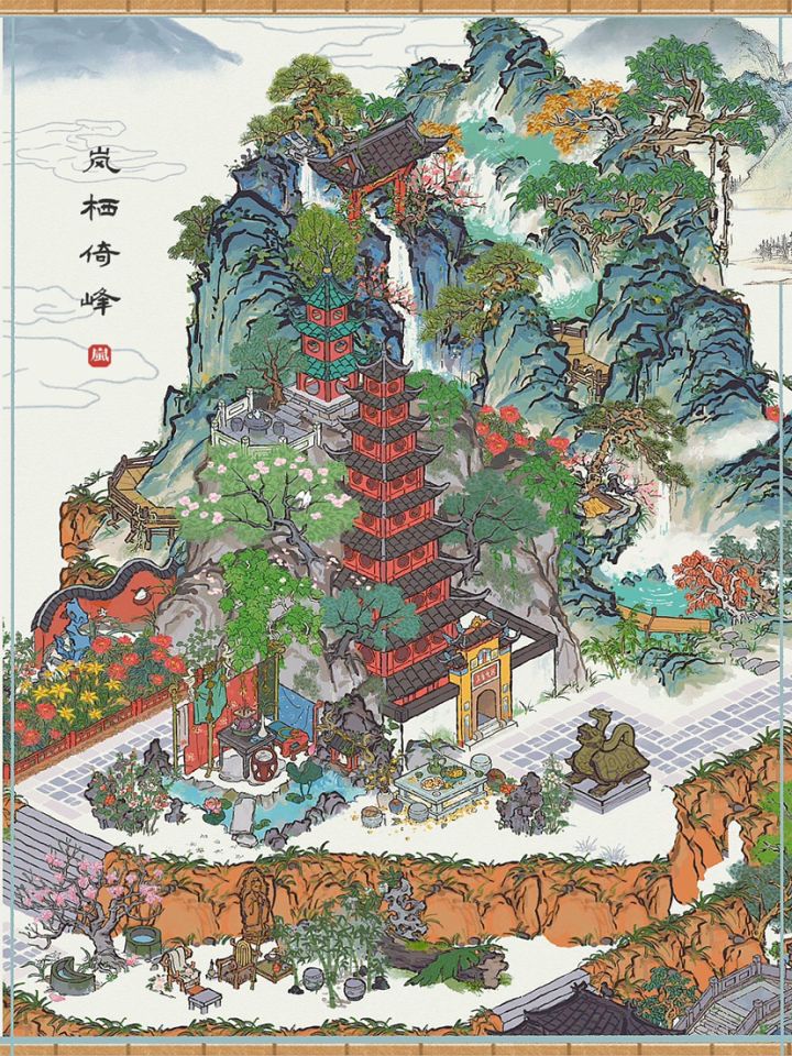 🏝江南百景图贰周年|岚栖倚峰🍃·倚峰塔x空谷画池复刻布局·✦布局地点:杭州府|大佛坊·踏春坊·绕梁坊✦布局小景:·✨仙山胜景·主要建筑:·倚峰塔|岚栖山|鹤鸣山|愁空山|藕花祭台|玄武铜像|盆景照壁|鱼跃龙门|桂花宴·有仙名山小路蜿蜒,自下而上偶入岚栖,倚峰山塔层层叠叠。·✨大佛寺·主要建筑:·溪山佛像|乾元门|道观回廊|寒梅盼春|盆景照壁|藕花祭台|半山娘娘庙·寺庙坐落半山腰,佛像下是半山娘