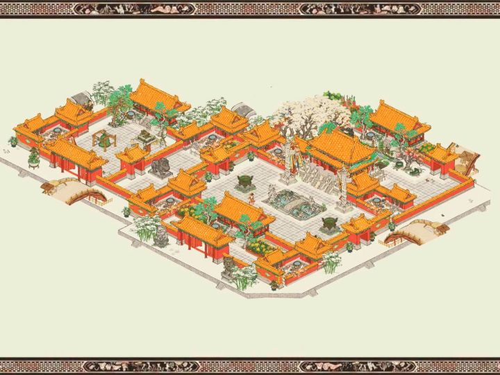 宫殿画池建筑群落成!圆了本知府的大明皇城梦蹲点抽建筑,运气一般,160抽出天级,选了应天府后山这块地,面积和方正程度都很适合,在整个应天府中也有种皇城镇守后方的感觉。总的来说这次画池还算可以,墙和建筑之间有视觉连接效果,造型也很适合我这种对称型强迫症,美中不足的是建筑的样式少了点(大型建筑就三个,再出个2x2的亭子会好点),摆放的时候只能通过变换方向和隐藏部分特征来达到建筑样式繁多的效果。另:宫墙外面那一圈不知道怎么布置,暂时先放了点花,不知各位知府有何好建议吗?