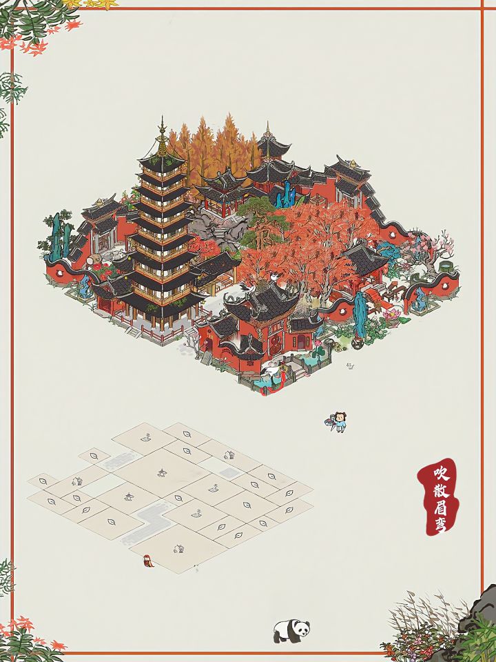 牡丹亭终于好看了山道露出来非常丝滑两个道观回廊叠着放会出现小双塔诶这个布局比较平价,你值得拥有建筑:金光洞|保安堂|灵麒塔|牡丹亭|乾元门|道观回廊|盆景照壁|莲花台|日月井|深山枯藤|树下圆凳|漆树林|双子峰|舞榭歌台