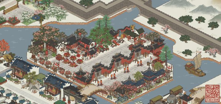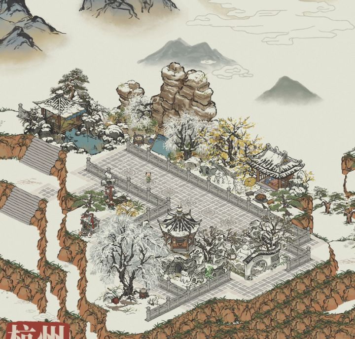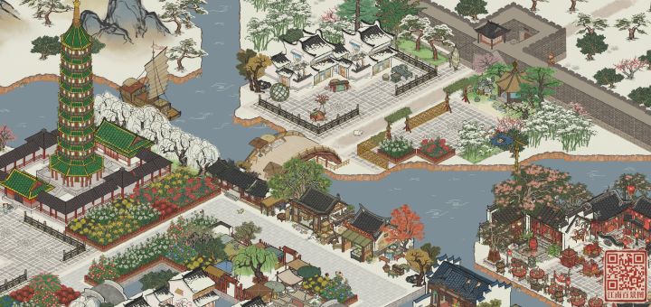 对扬州青青小山小树和粉嫩桃树樱树爱不释手!爱死这种嫩嫩的建筑!所以我决定继续玩起来,今天做一个水系的,还有一直都很喜欢人工湖,好看且可塑性高👍🏿背景图来自@絿一個絿背景图做得好棒,简约又美观😍我布局的地理位置在:扬州府,古渡边、东坡边、二西边、银汉边。上图:首先最初的是一个小岛,中央可放桃花也可樱花,其实看起来都差不多🤔地基图是人工湖的摆放位置,空格就是小装饰物。这时候在小岛的基