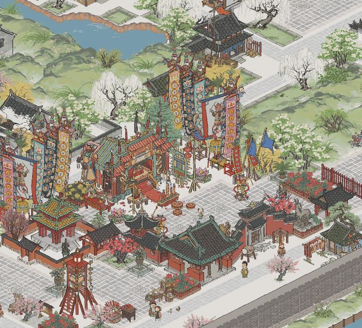 把一些带椅子的建筑凑了一下,意外的热闹汤圆铺子还可以按节日替换成月饼铺子和糍粑铺子!