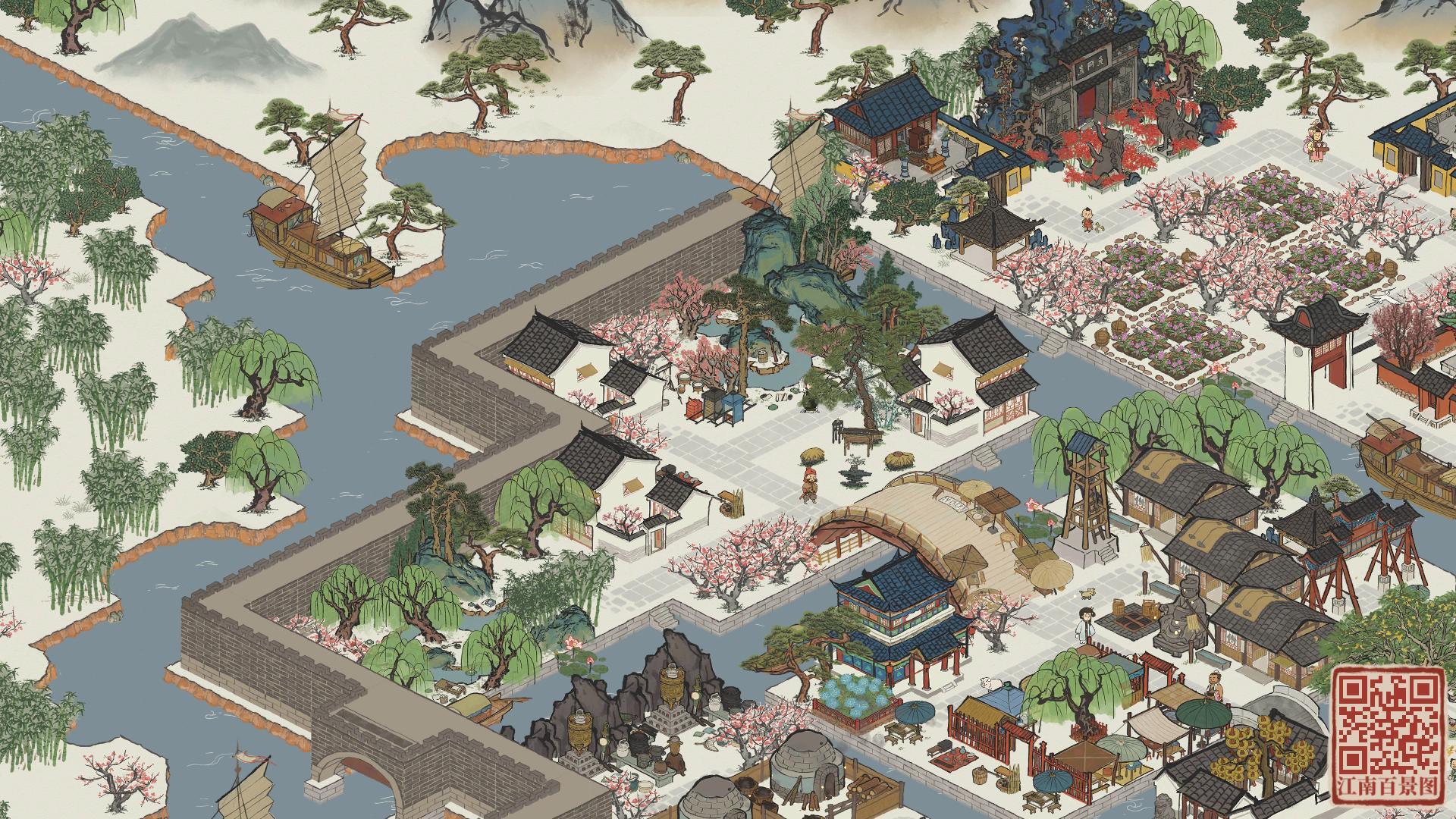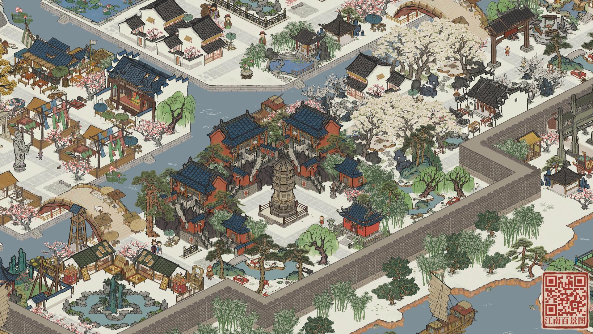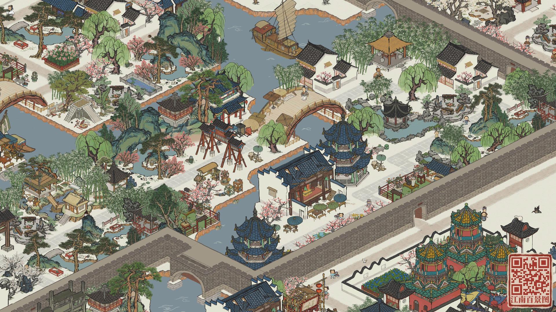 建筑:喜雨禾田、放鸢台、古柳迎春、仲夏悠居、清风亭、桃花水渠、春日踏青、义庄、语莺花市、临溪亭、璧泉垂秀、石桥花荫、月老祠、驿站、盆景园、风雅琴院、聚流亭、颜如玉、游凤画舫、水上戏台、甜品铺子生产建筑:铜矿、铜镜厂、养鸭场、餐馆、琥珀酒坊、锦绣饰坊、珍馐食肆、棉花田坐标:绍兴府·离索桥|春秋桥|运塘桥|同舟桥|渡人桥|惊鸿桥|倚斜桥|浣纱桥·全激活#