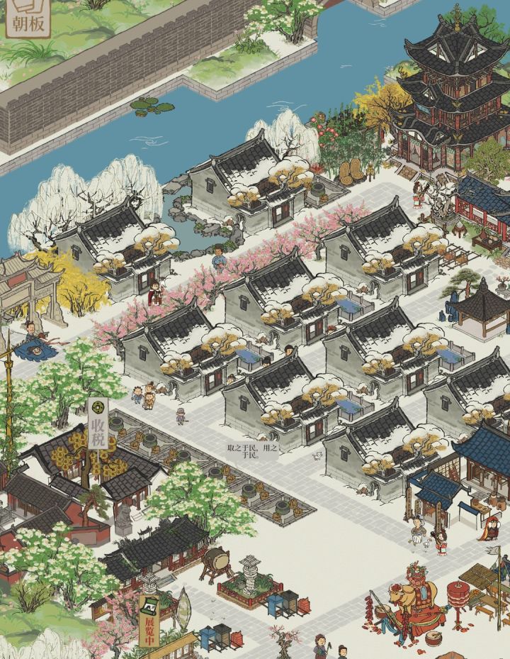 东南形胜,三吴都会,钱塘自古繁华。烟柳画桥,风帘翠幕,参差十万人家。——望海潮(柳永)⇧这里只建造了四个商栈,排列得较为紧密,杭州最繁华之地( ᐛ⇧民宅沿河建造,这样比较有序,主要是不用考虑太多关于🏠的布局⇧杭州最开始的地方