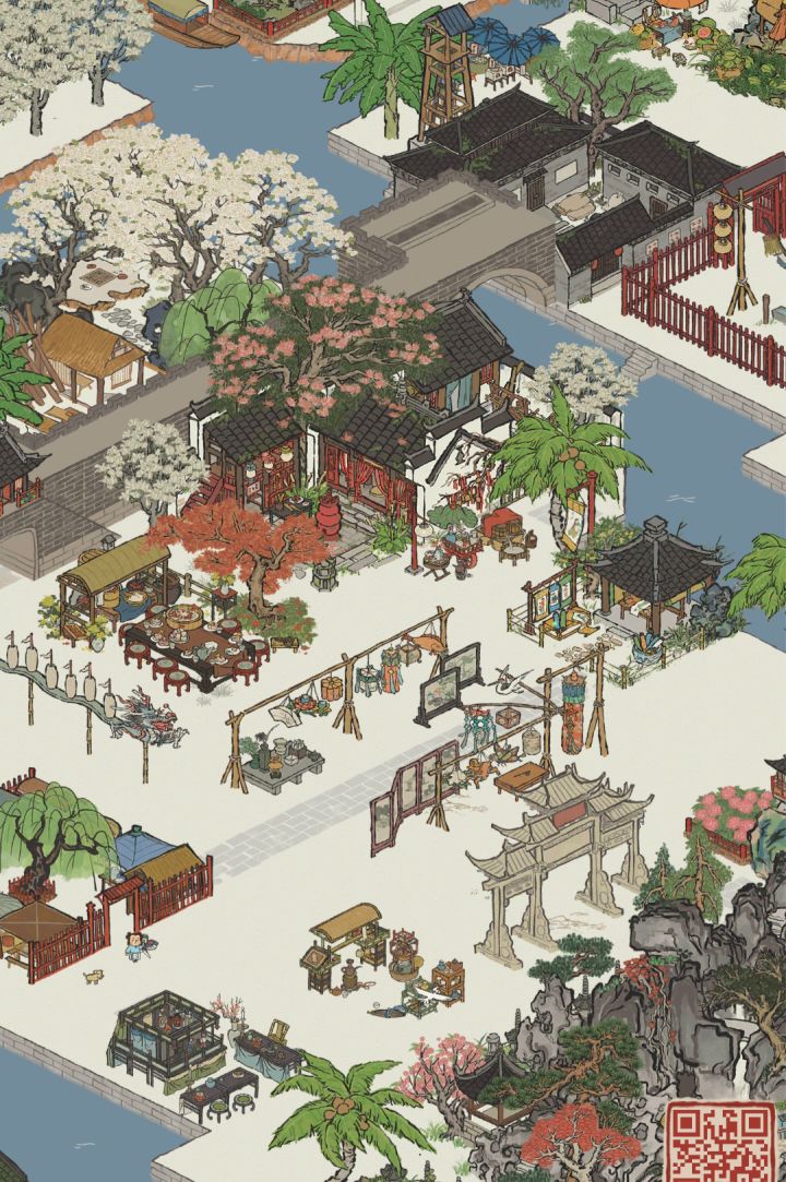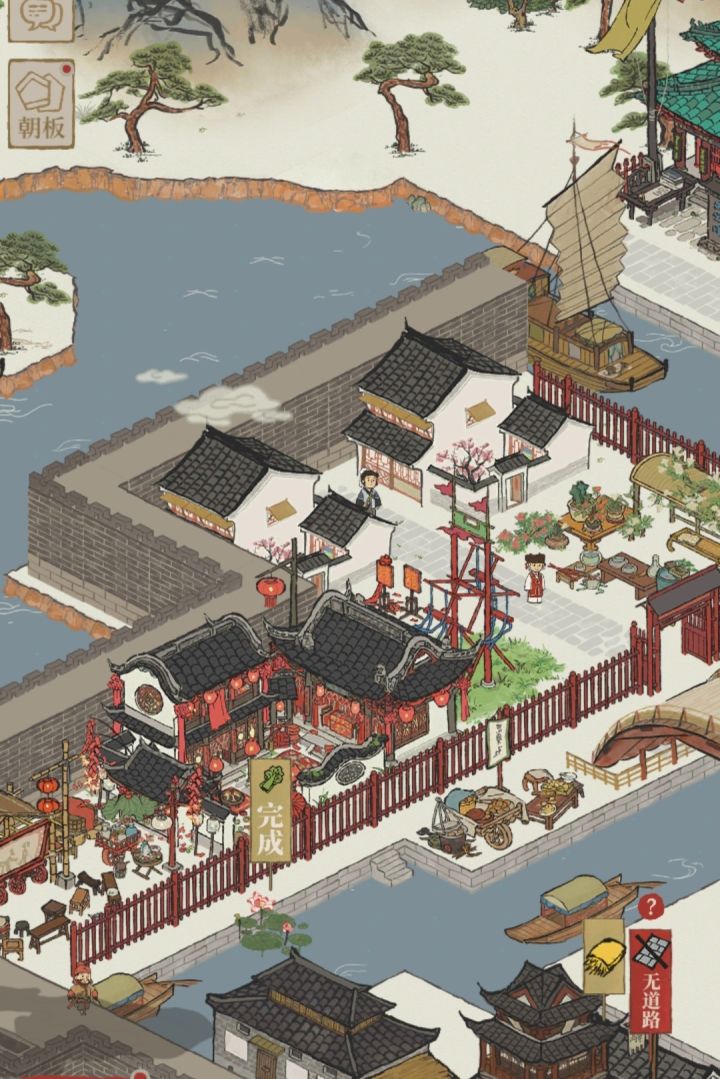 ●印刷厂,前面的经书棚,和年历棚,删不得,又好多鱼!幸好它们长得像摊摊😂就直接搞个小摊一条街,后面就当是巷子好啦!(目前是良好,巷子里有两排路,想要优秀可以自己加物件)●印刷厂必须要建设两个,一个经书,一个年历可是印刷厂内的物件真是太多了!棚子,职工宿舍,库房,这三个日常生产必须备的。但是,装帧区,和备料区是增加产量的(非肝姐妹,建议不建)装帧区那可大树很好看,喜欢的就留下。●我自己