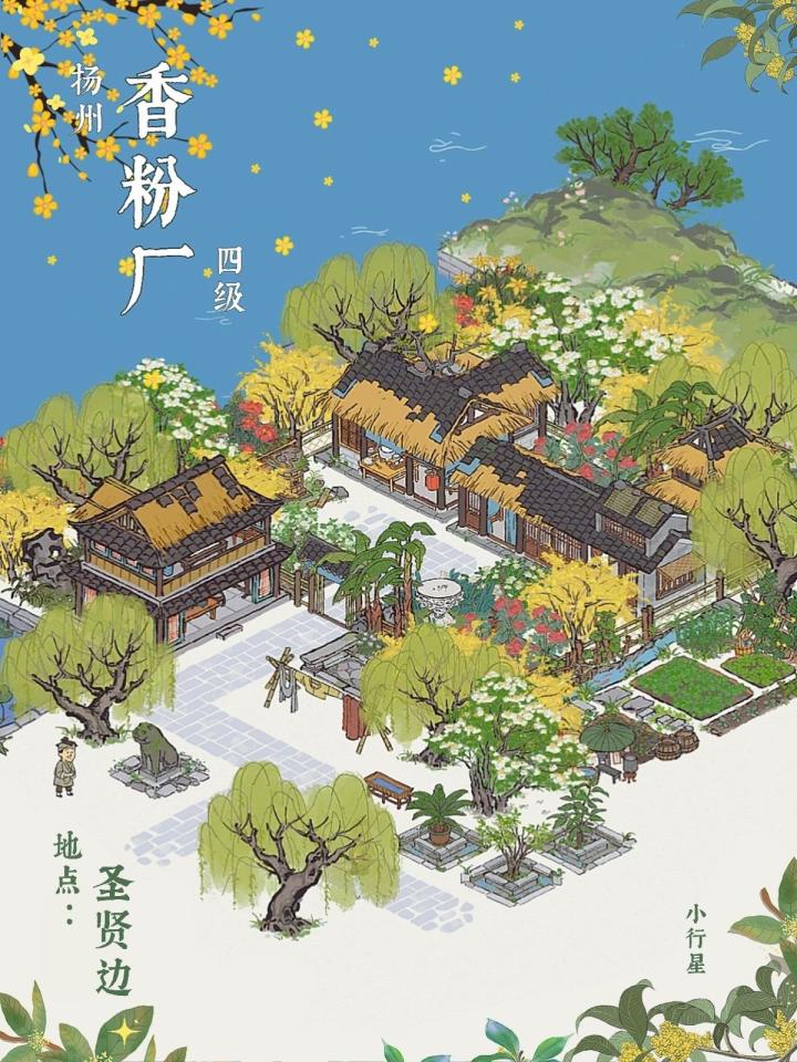 写在前面的话: 参考了@我是小行星啊 的布局。大佬!我爱你! 我自己也加了点小小想法💡,从原料生产到加工成品售卖,一条龙服务!没有中间商赚差价,嘎嘎赚钱💰!同时解决了员工的娱乐活动『可以去下下棋喝喝茶』,还有种菜娱乐。 还有小小强迫症,绿化要对称☺。 有细节问题的可以找我啊! 补充了一下图片…… P1 参考的图片——大大的原图 P2-3 我的第一次布局图以及地基图 P4 香粉厂加成属性图 P5 我的第二次修改图『头秃了』🐚❎住了