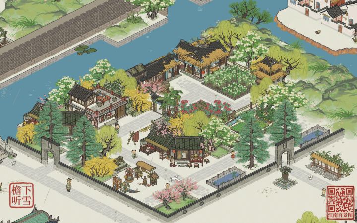 大家好,我是意识流布局的冬日暖阳~江南百景第三十景:赵家街!在很久很久以前,我曾经发过一张名为“赵家宅院”的布局,今天来分享赵家宅院左边的一条街,这里叫“赵家街”。赵家街的灵感源于《红楼梦》中的“宁荣街”,那是真正的“花柳繁华地,温柔富贵乡”。在本次布局中,我分割出了两个部分,左下角是花园回廊,借鉴了论坛里大佬的思路(具体是谁忘了),可以看出,做花坛造景,最重要的就是颜色上的和谐,可以做“