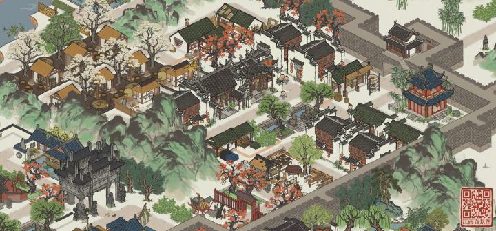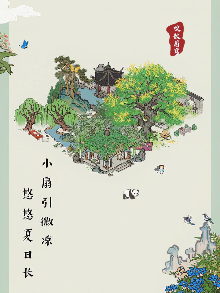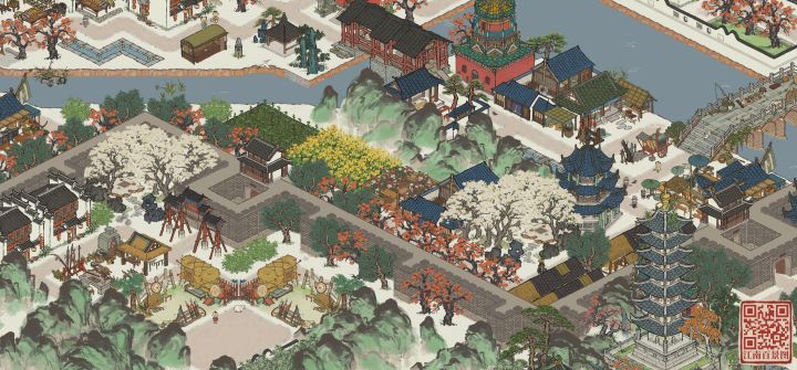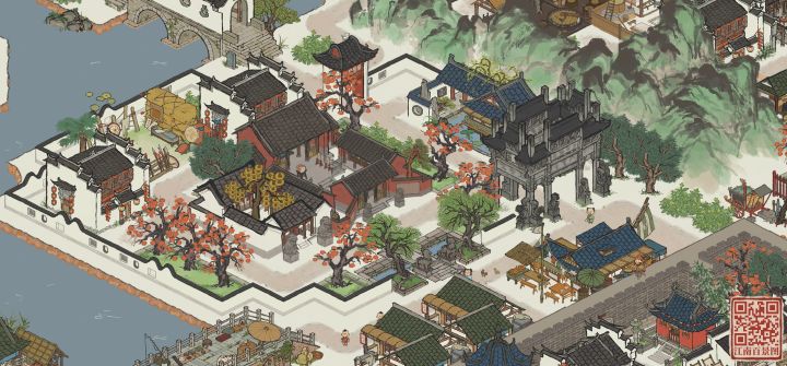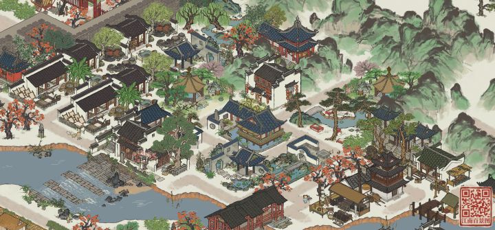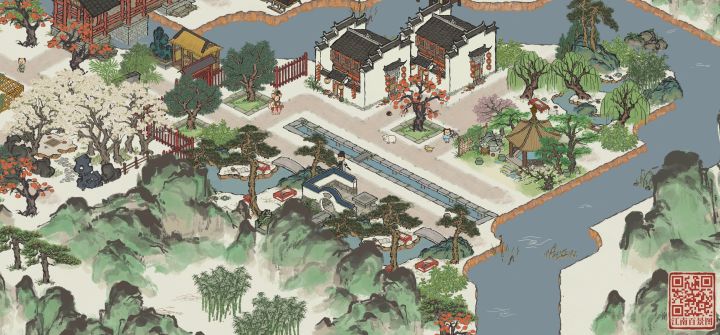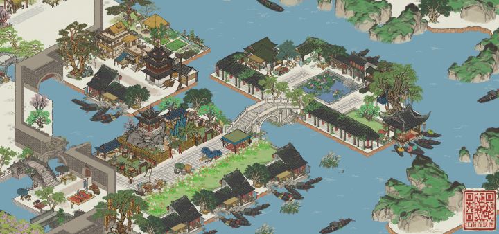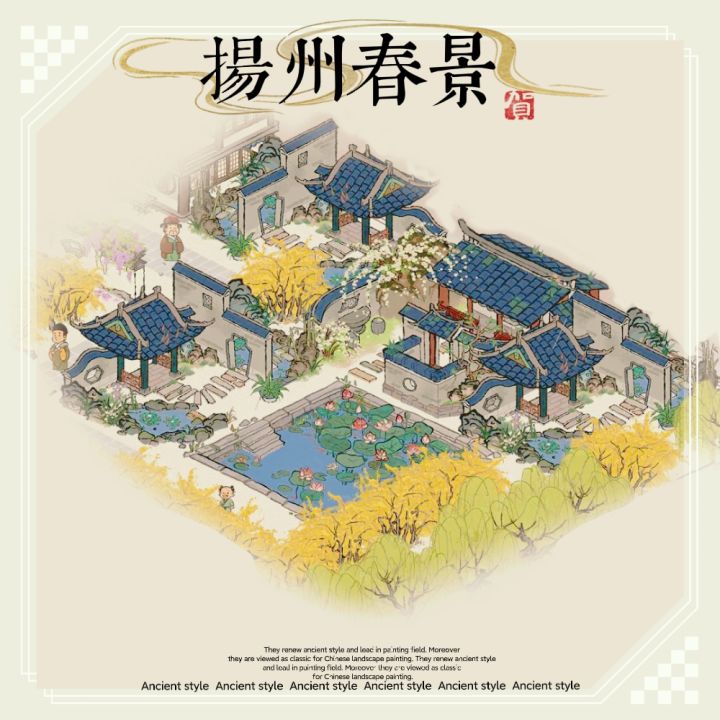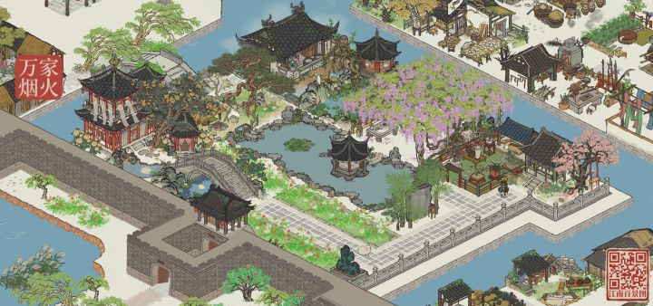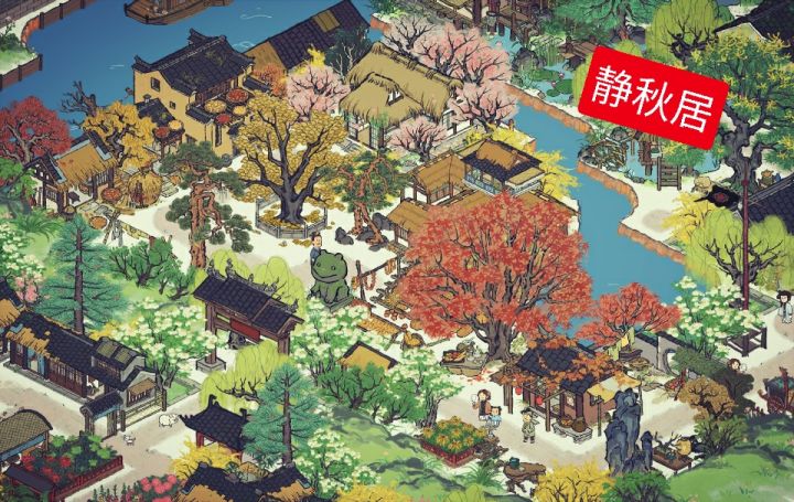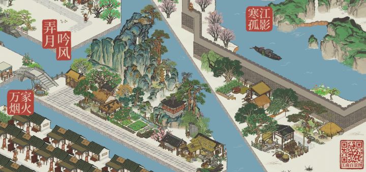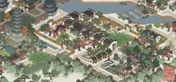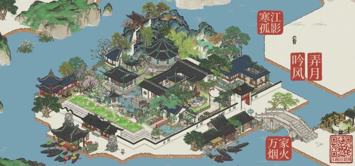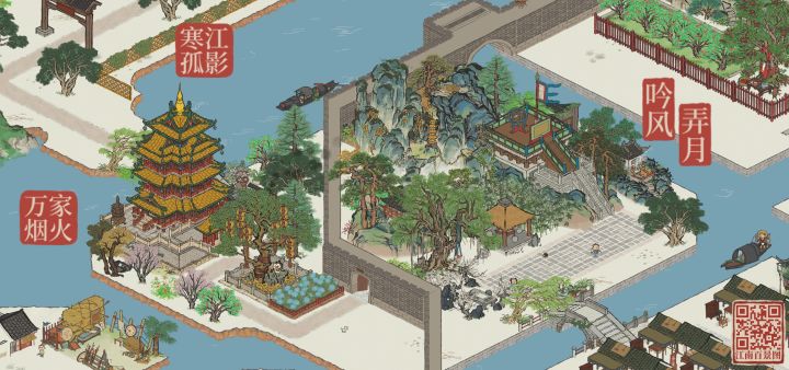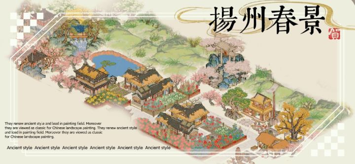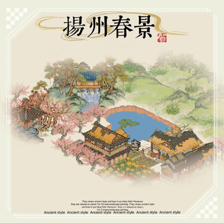 长亭飞瀑的颜色和扬州地图的小山完全一致,配自有的湖泊非常合适~