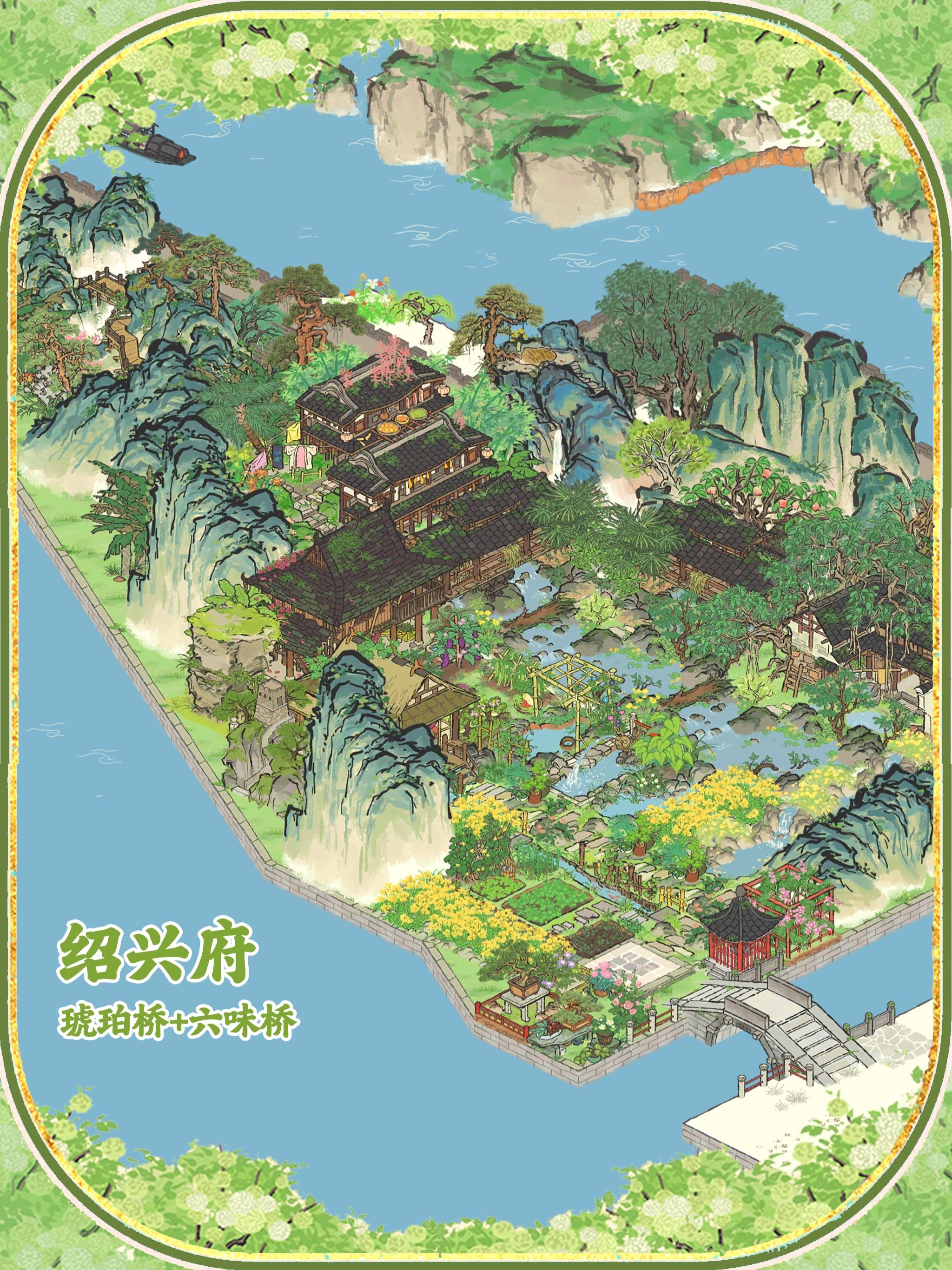 🌸绍兴府琥珀桥+六味桥🌸把桥头那块草坪去掉效果更好哦(哈哈哈哈)#江南百景图 #今天游戏圈发生了啥 #游戏种草计划
