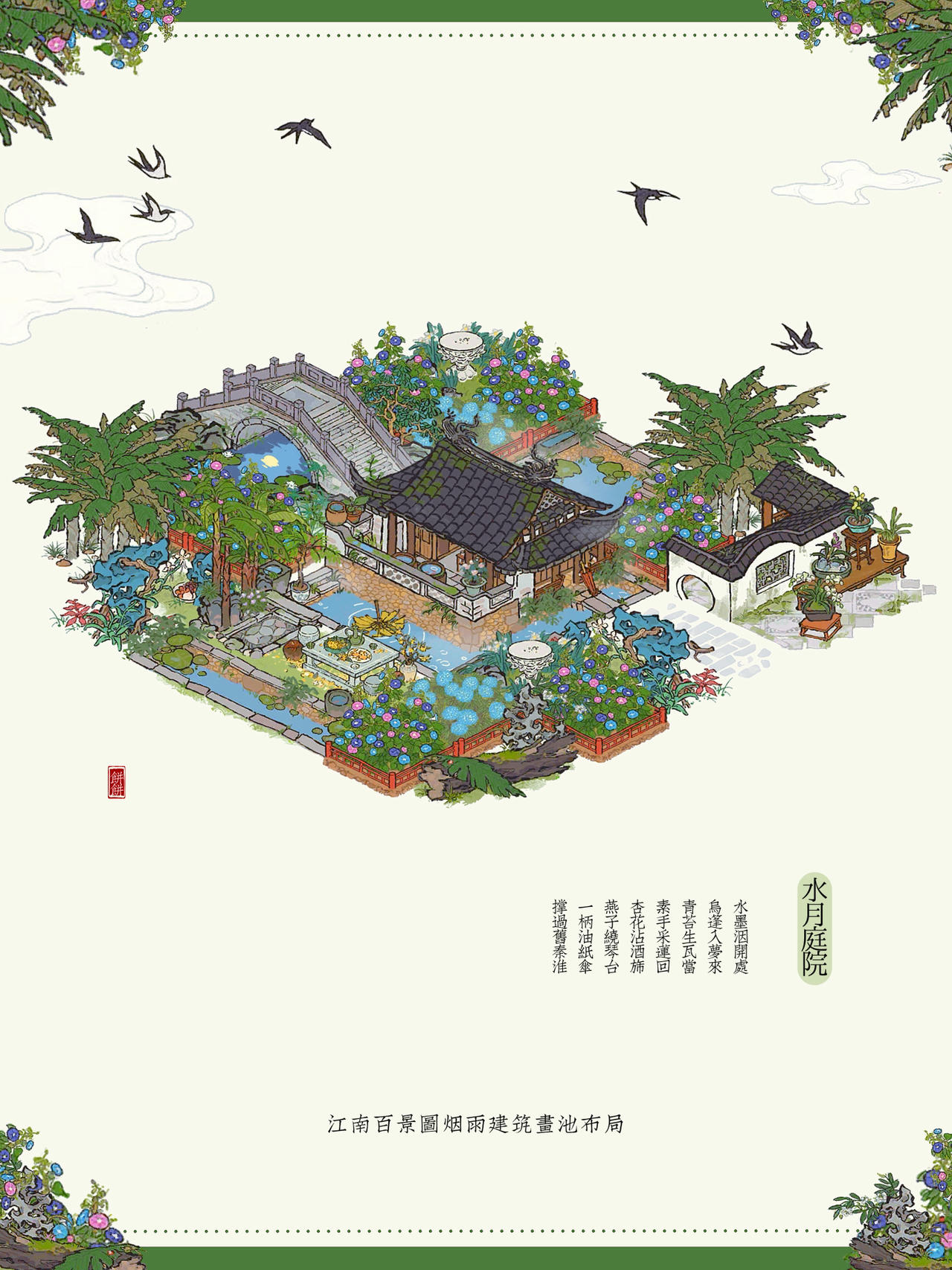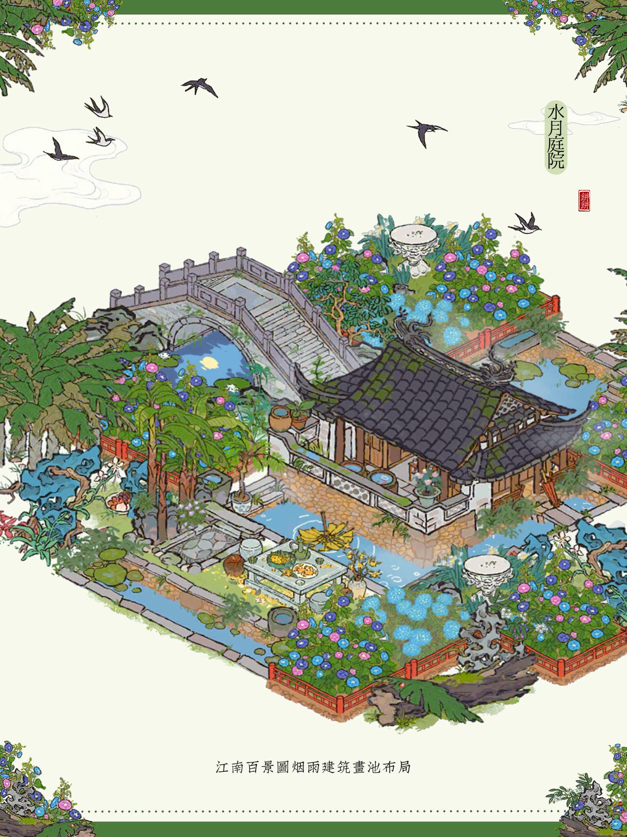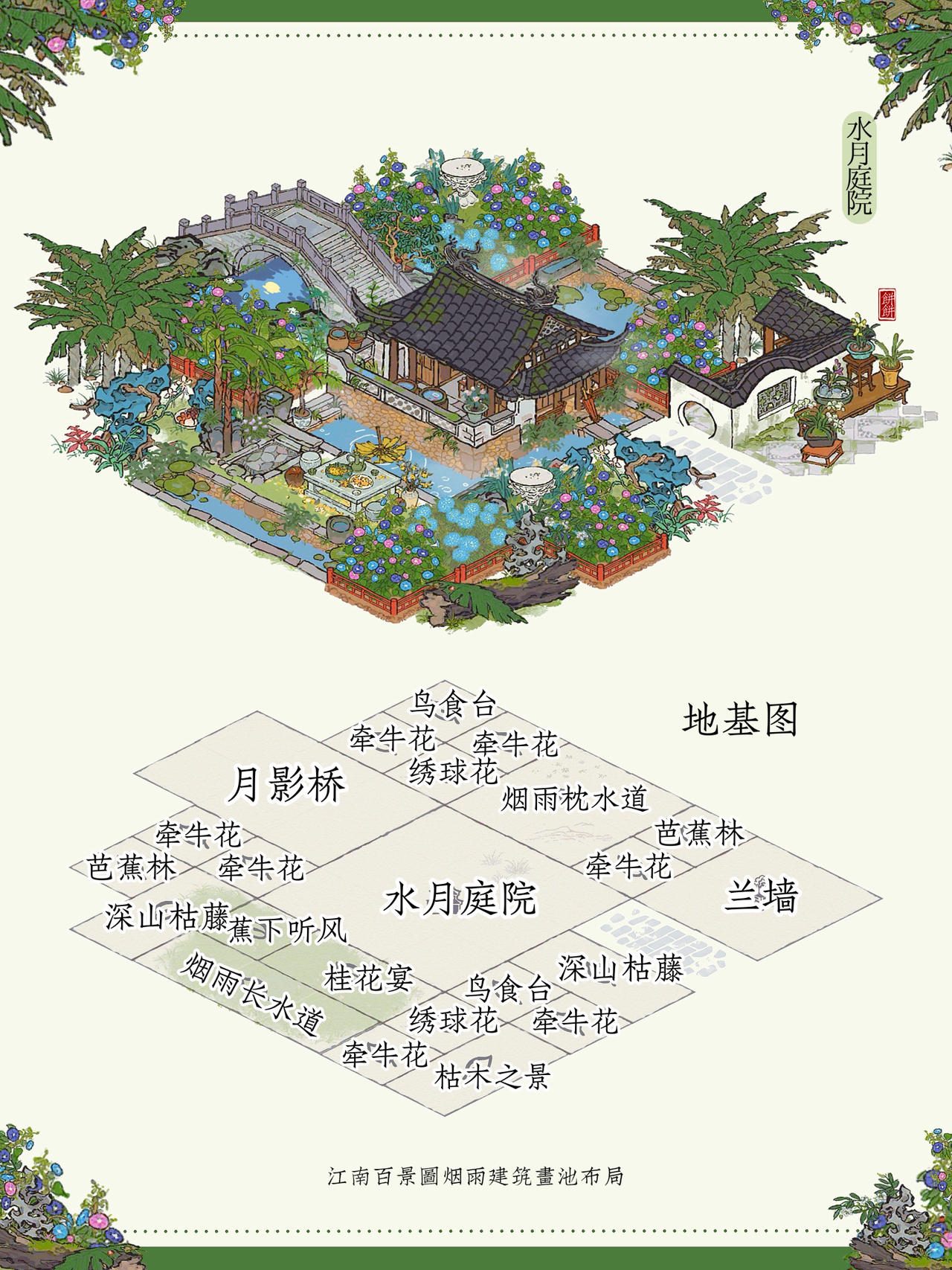 🍃烟雨建筑画池返场啦!来看看布局吧!📍江南百景图烟雨建筑画池水月庭院布局✨主要建筑:水月庭院、烟雨长水道、烟雨枕水道、月影桥、深山枯藤#今天游戏圈发生了啥#噗噜噜实验室#游戏推荐#游戏种草计划#游戏安利