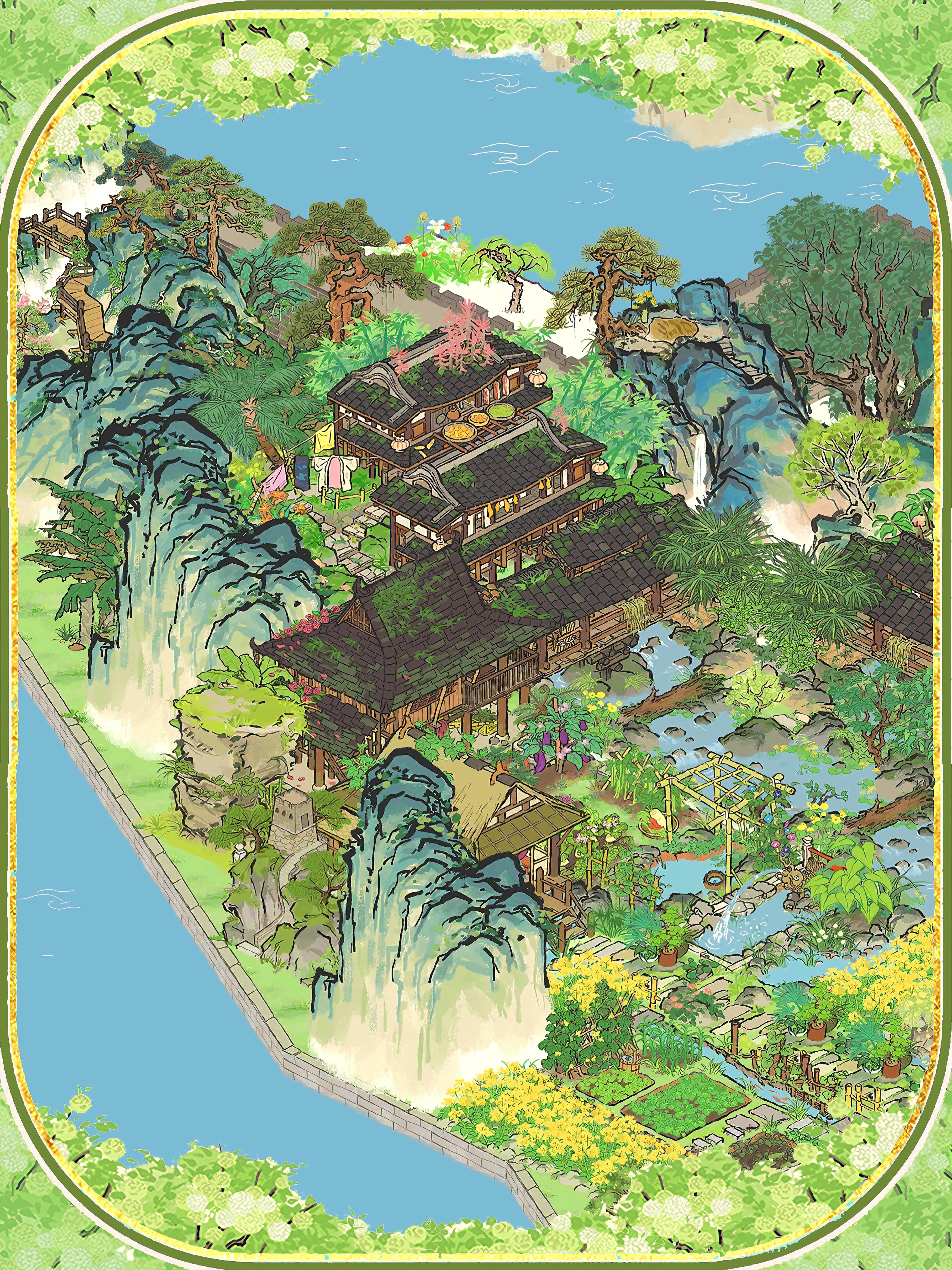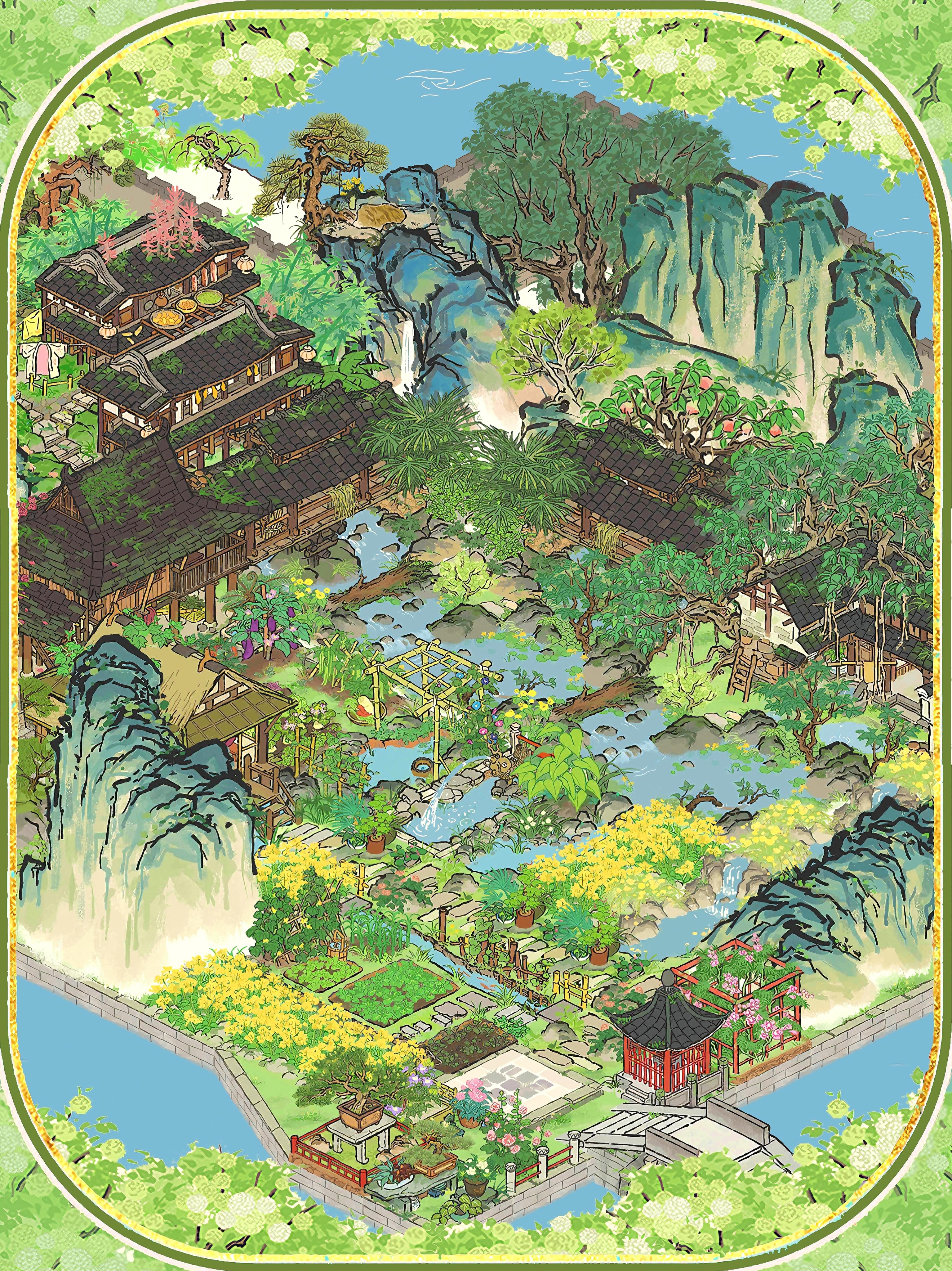 建筑:林中白桦、秋游之乐、冷香居、苍绿山坡、春园小径、桃花酿蜜#江南百景图 #江南百景图布局