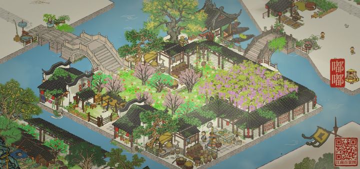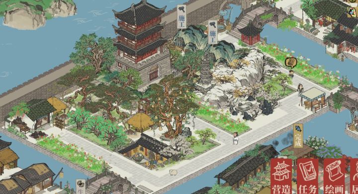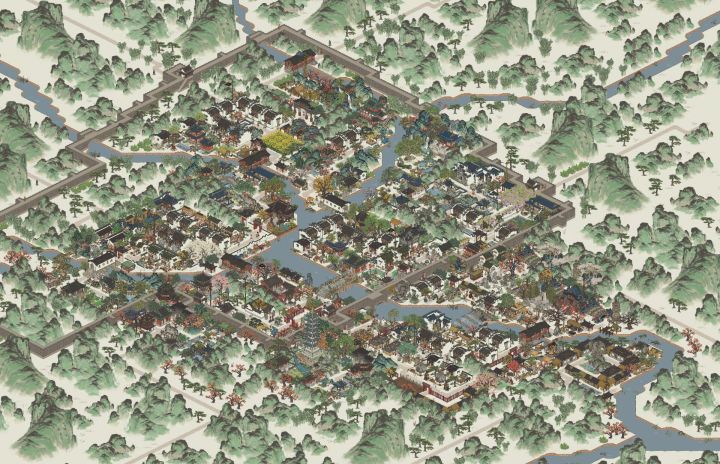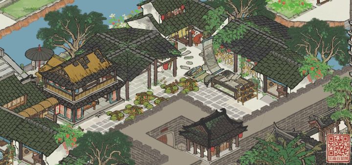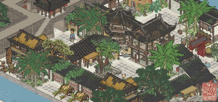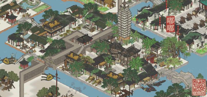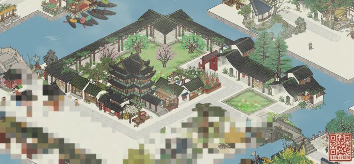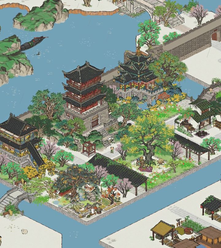 【抄作业来源】某红书号:1362206186【地理位置】杭州府的晴川坊、清河坊以及次第坊【我的成品】三角地块让场地变得更丰富,双向的大门又满足了通路的需求。东北通向商栈街区,东南通向温泉澡堂,掌握妥妥的地理优势。都说琴棋书画、文人墨客,那豪华书院怎么能少的了棋院、盆景园、珍宝馆及茶馆呢?【地基图】【原作者图】