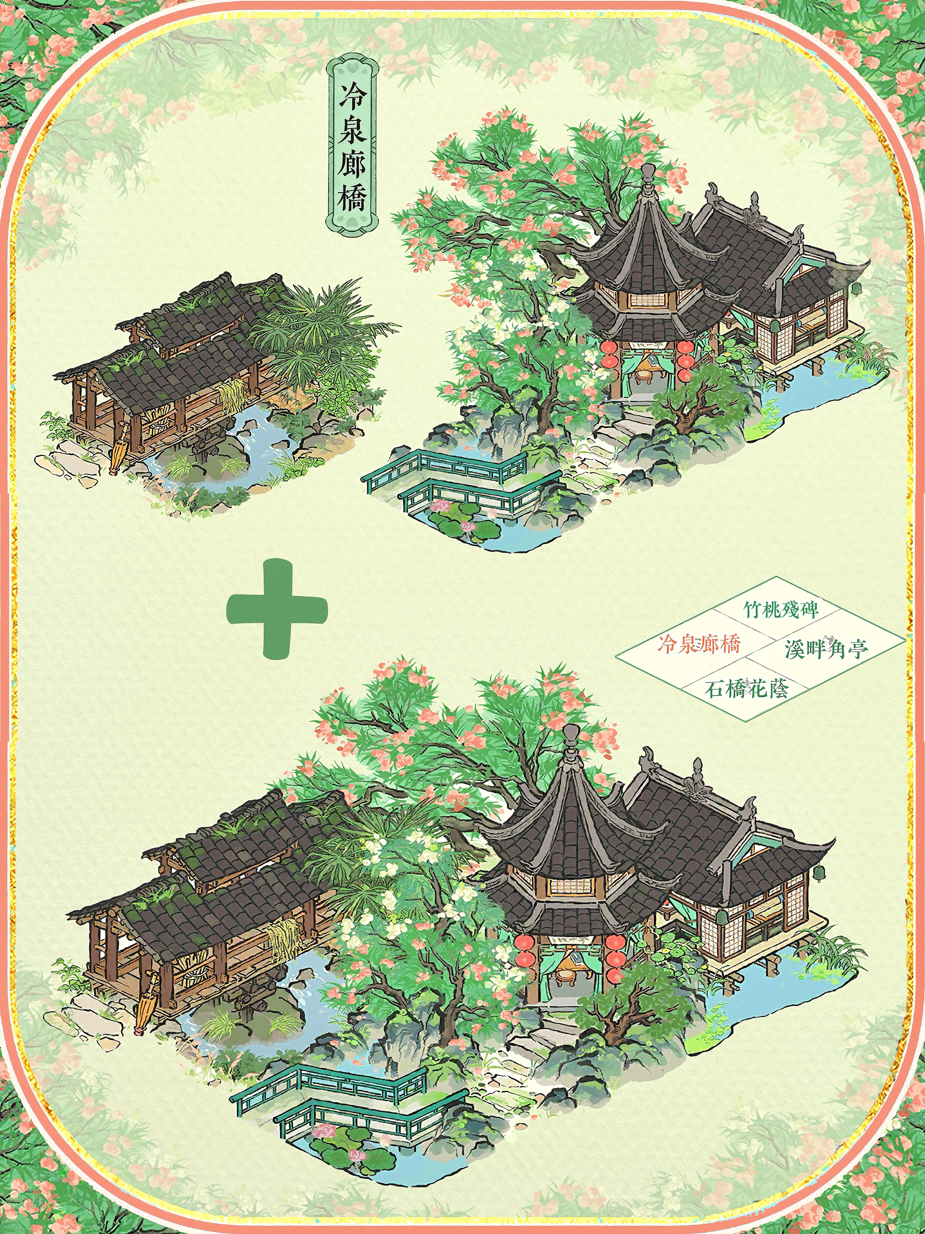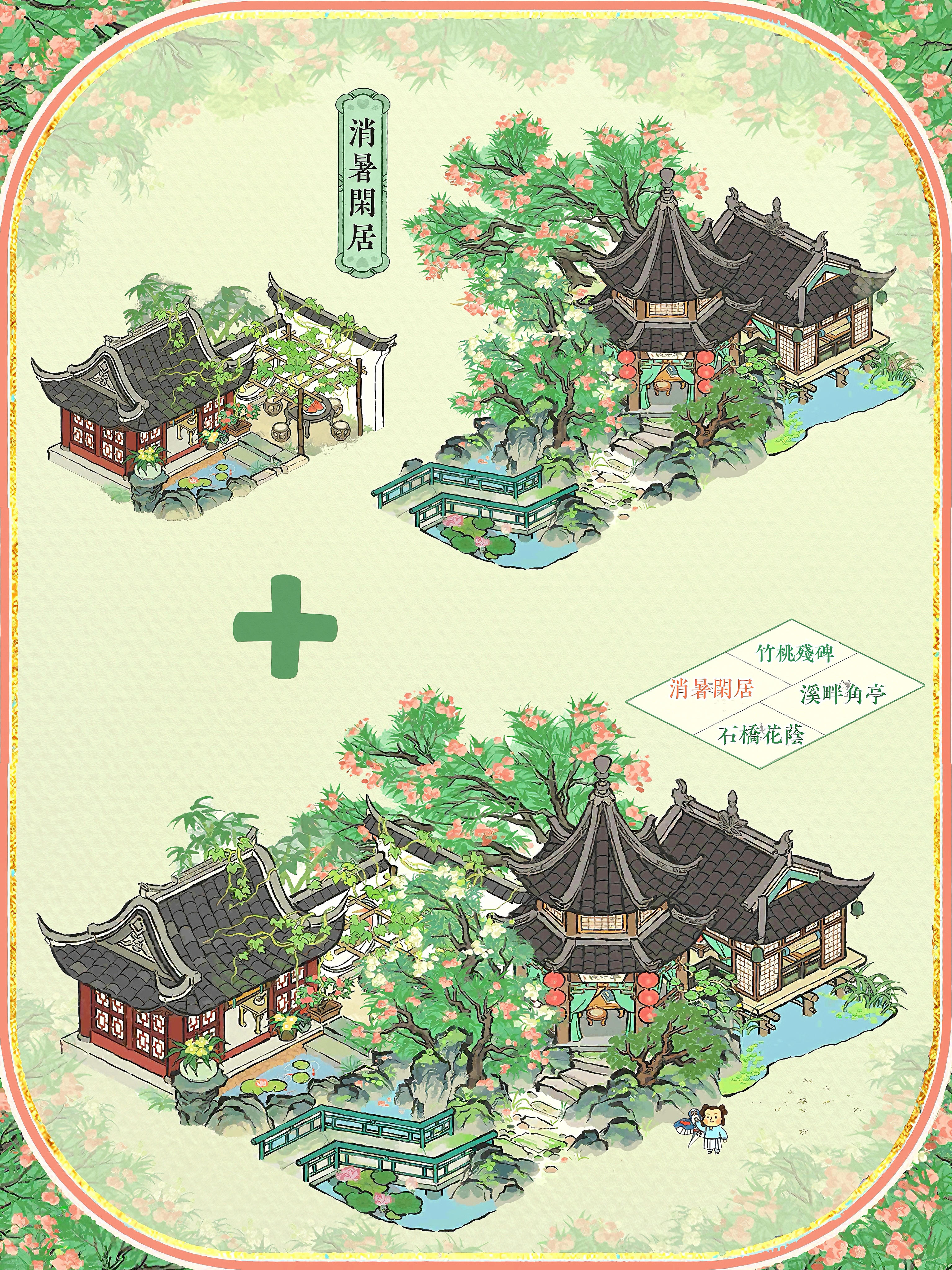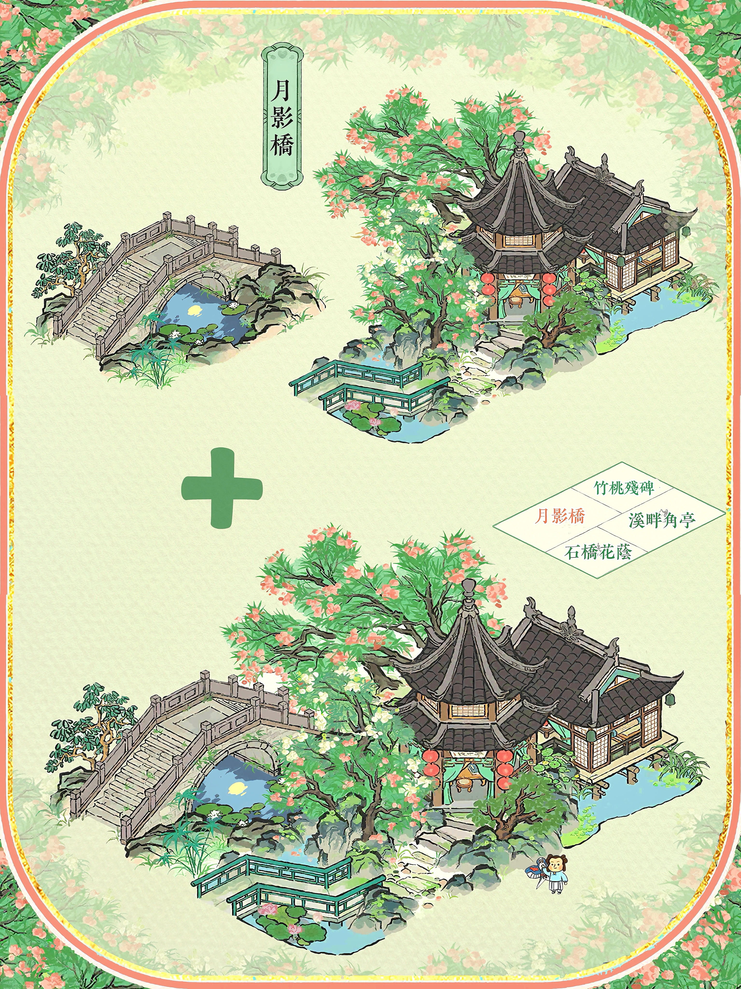 🍃夏限组合配上2×3格的建筑,每一个都好好看🍀石桥花荫+溪畔角亭+竹桃残碑#江南百景图 #今天游戏圈发生了啥 #游戏种草计划