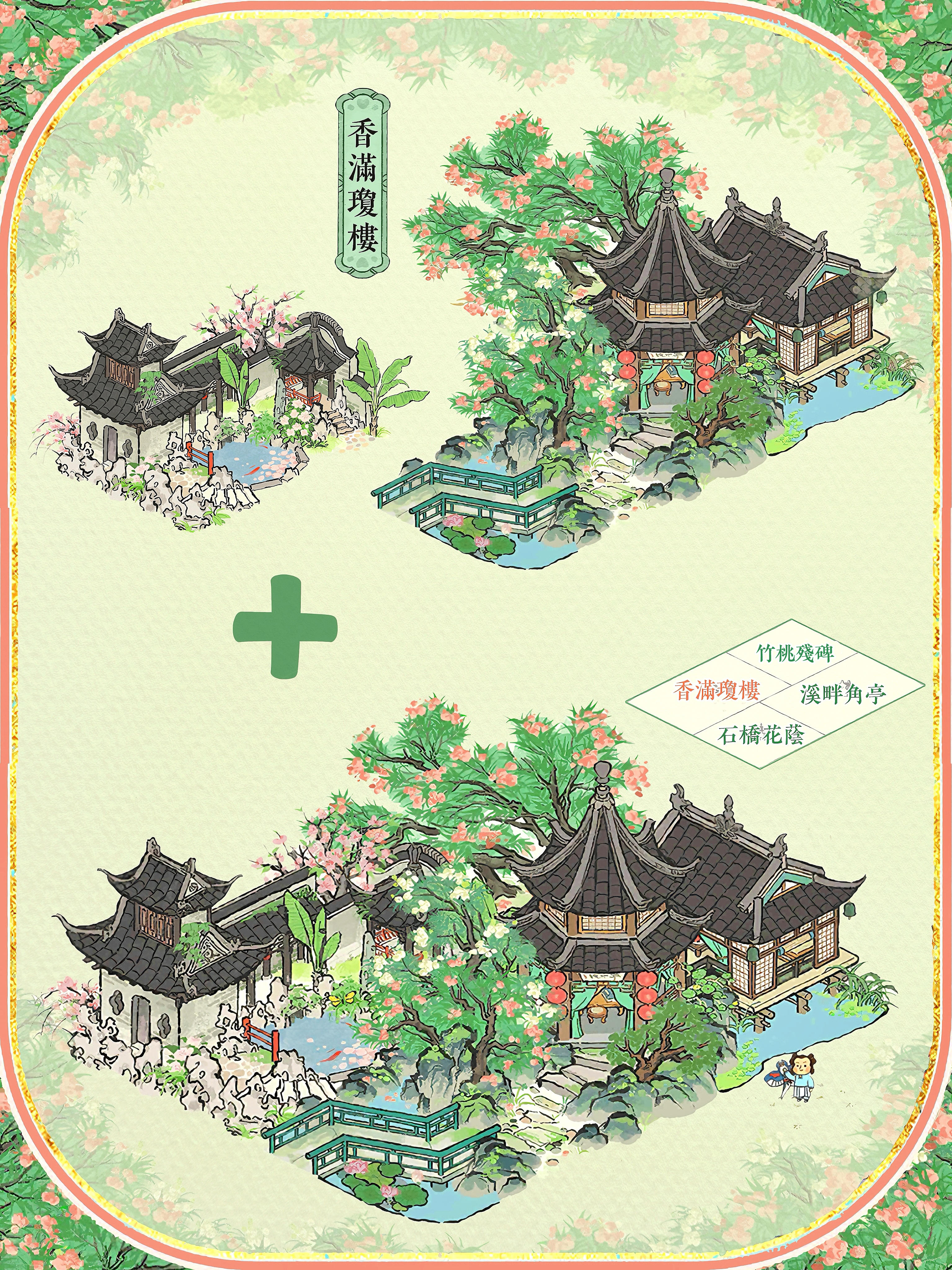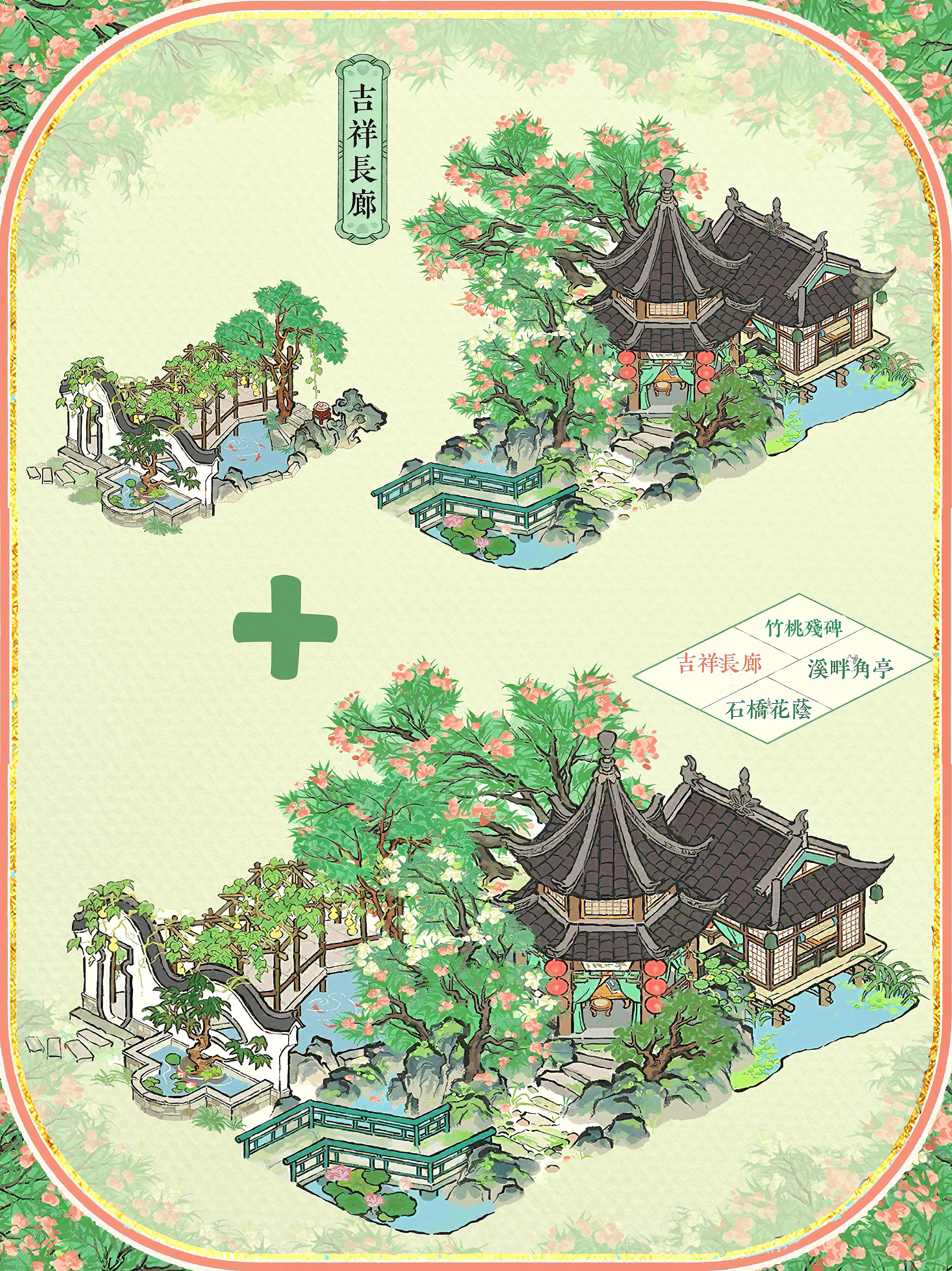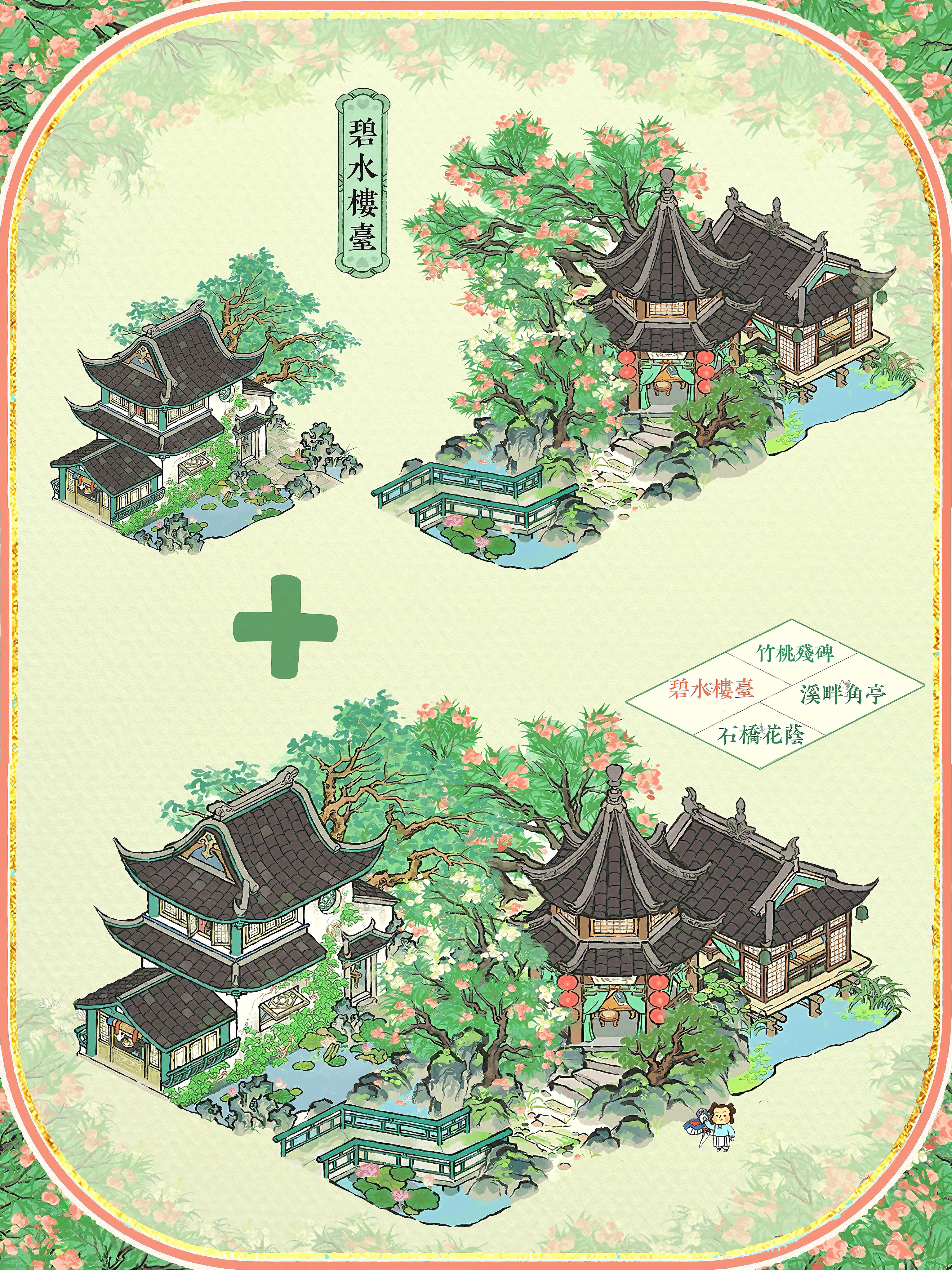 🍃夏限组合配上2×3格的建筑,每一个都好好看🍀石桥花荫+溪畔角亭+竹桃残碑#江南百景图 #今天游戏圈发生了啥 #游戏种草计划