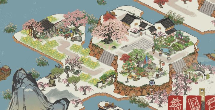 建筑:故人茶庄,灵麒塔,秋木重楼,金钱松,连香树,黄叶秋风楼,知秋落枫,墙花半隐,乱石灌木,青青石板,蔓蔓瓜藤,疏疏蕉叶,半亩油菜,小园石径,绿影小道#江南百景图 #江南百景图布局