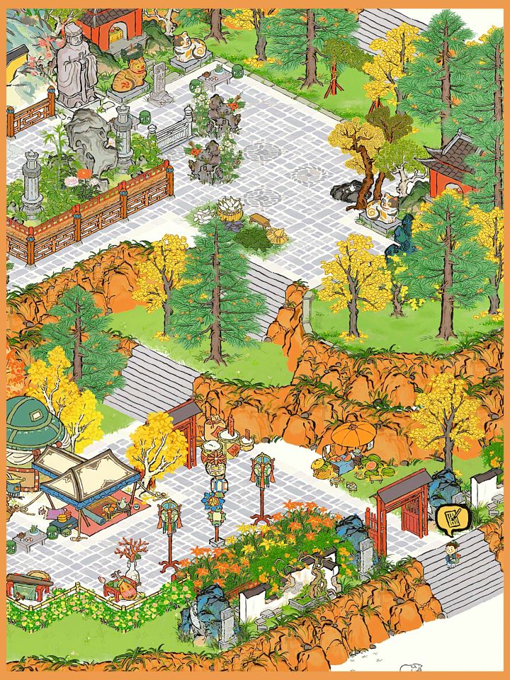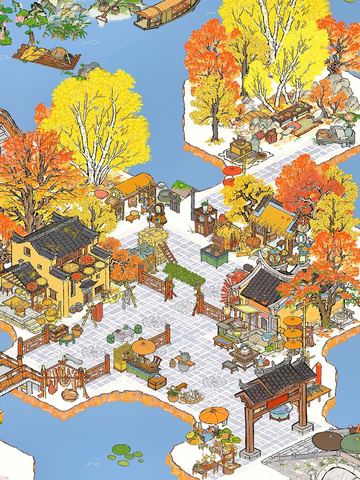 建筑:连香树、林中白桦、秋游之乐、叶落秋帐地标:杭州府.花栖坊 #江南百景图 #江南百景图杭州府 #游戏日常
