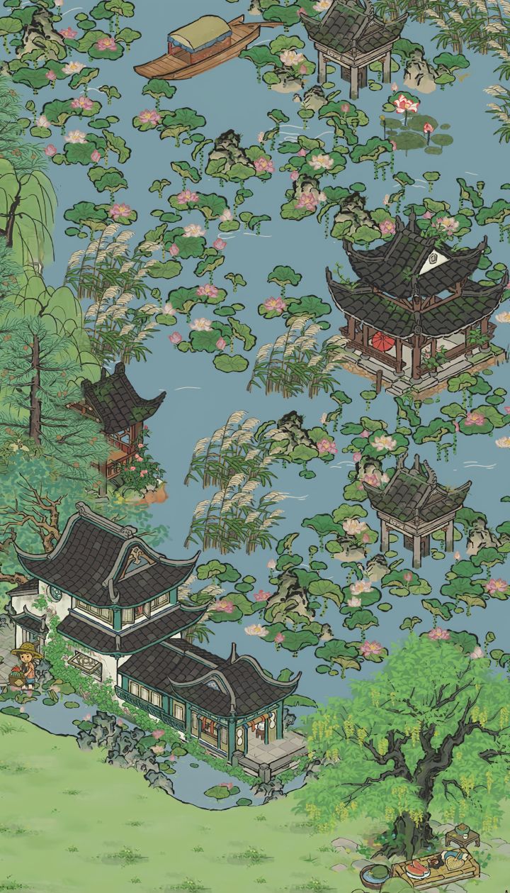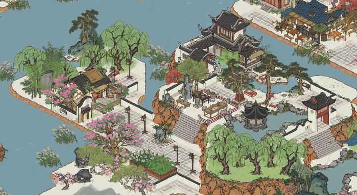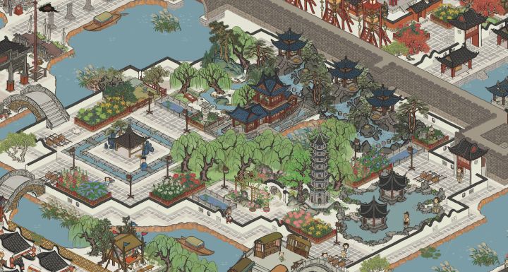 唯一的遗憾是月影桥铺不了草坪,不过用树挡一挡也还好,我的山水建筑基本都用掉了,不然想放片湖的#江南百景图三周年 #江南百景图布局 #江南百景图杭州府