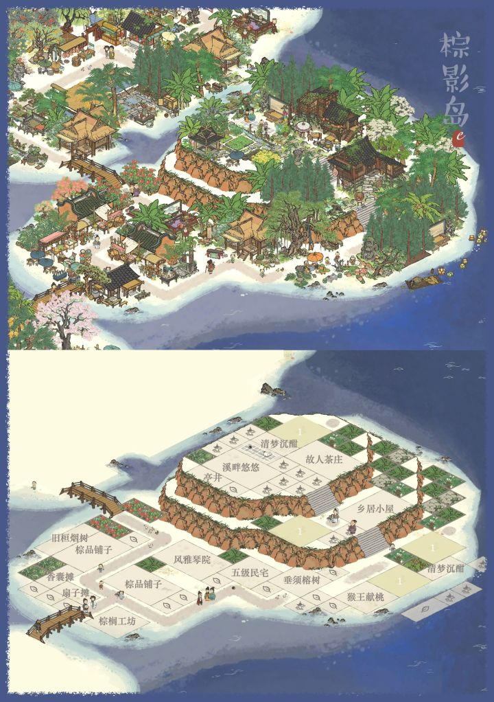 🏝️棕影岛①🏝️海风你轻轻地吹,海浪你轻轻地摇🏝️主要建筑:五级民宅·棕榈工坊·蔬菜园·碧海浮岛·垂钓烟波里#江南百景图#江南百景图四周年庆典#江南百景图布局#游戏推荐#游戏安利