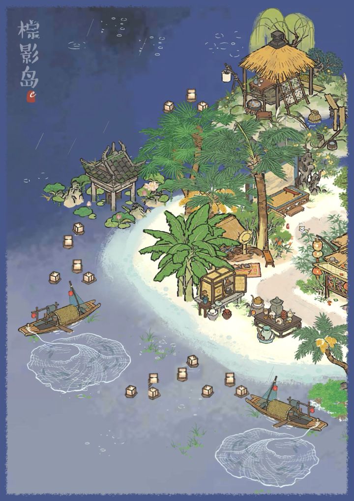 🏝️棕影岛⑤🏝️宁静的夜晚的海岛~🏝️主要建筑:五级民宅·故人茶庄·乡居小屋·棕品铺子·风雅琴院·溪畔悠悠·各种小摊#江南百景图#江南百景图布局#江南百景图四周年庆典#游戏安利#游戏推荐