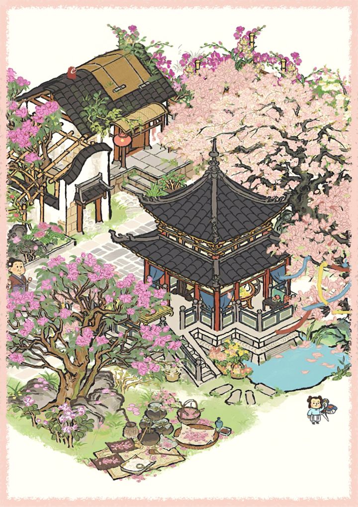 🌸小院·花朝喜春·4🌸应景给江百建个浪漫小院~🌸主要建筑:花朝喜春·落花墙外·春光小筑·春山杜鹃#江南百景图#复向扬州踏花游#游戏安利#游戏推荐