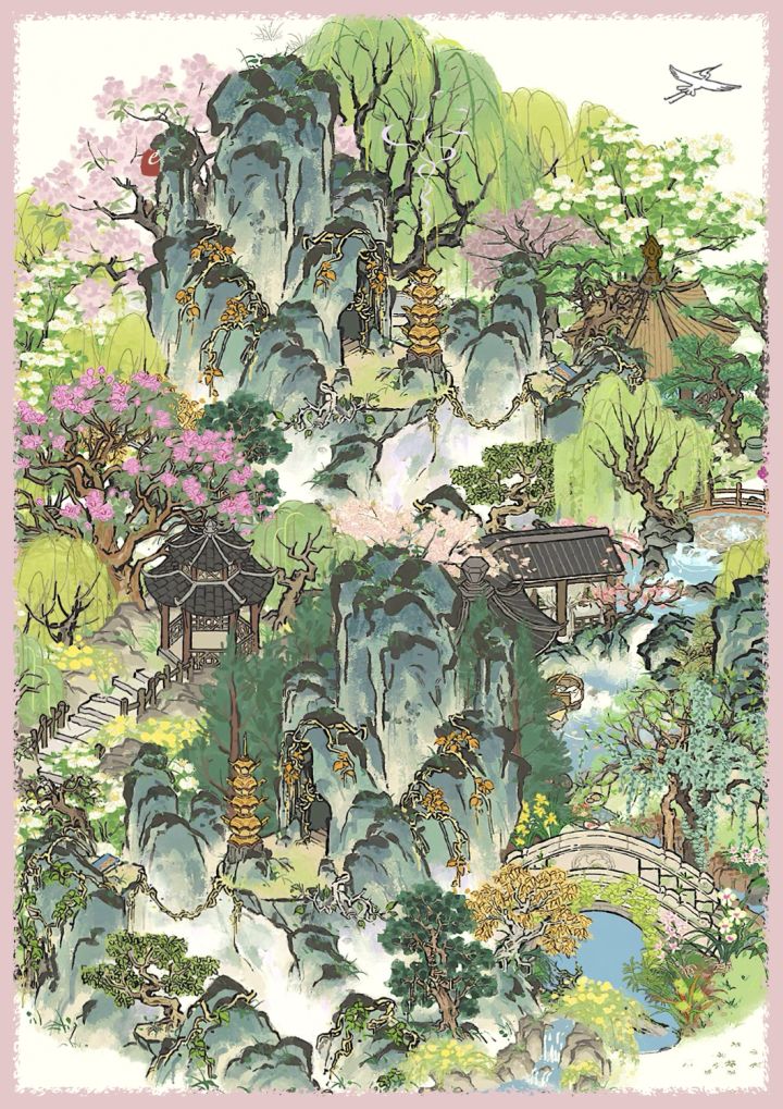 🌿江百赏春·上春山🌿“迟日江山丽,春风花草香。”🌿主要建筑:春山杜鹃·春临山道·云梦山·暖芳池·鸭池野趣·璧泉垂秀#江南百景图#游戏安利#游戏推荐
