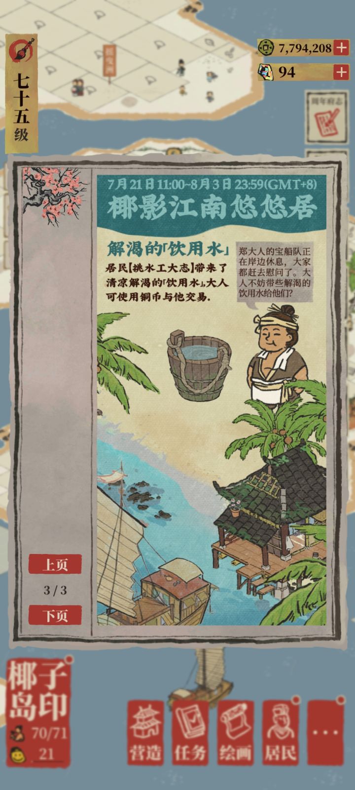请问椰子岛饮用水哪里领啊?不是说21号每天可以在椰子岛挑水工处领吗?我咋没领到?