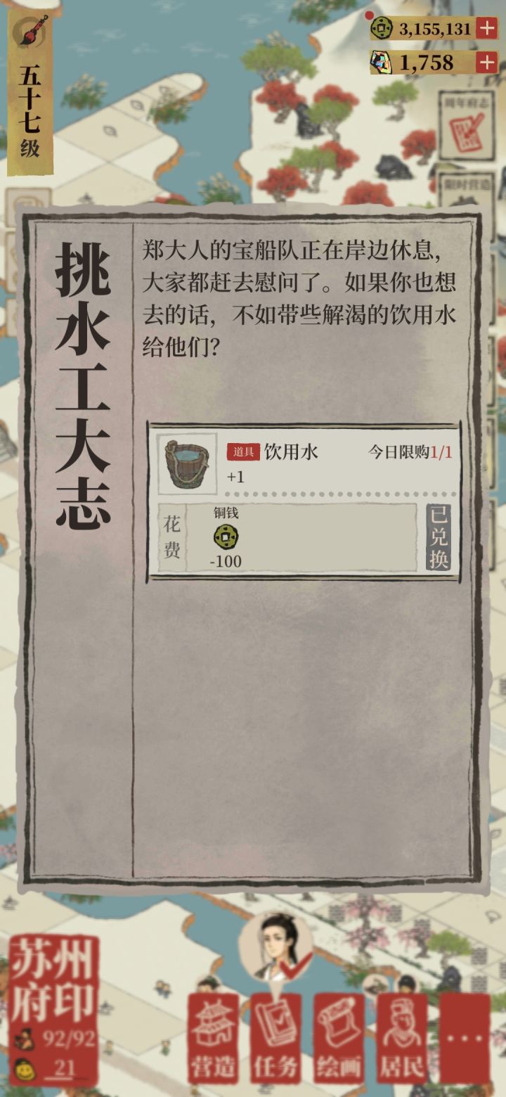 万能的友友们,在挑水工处领取饮用水,这个在哪里