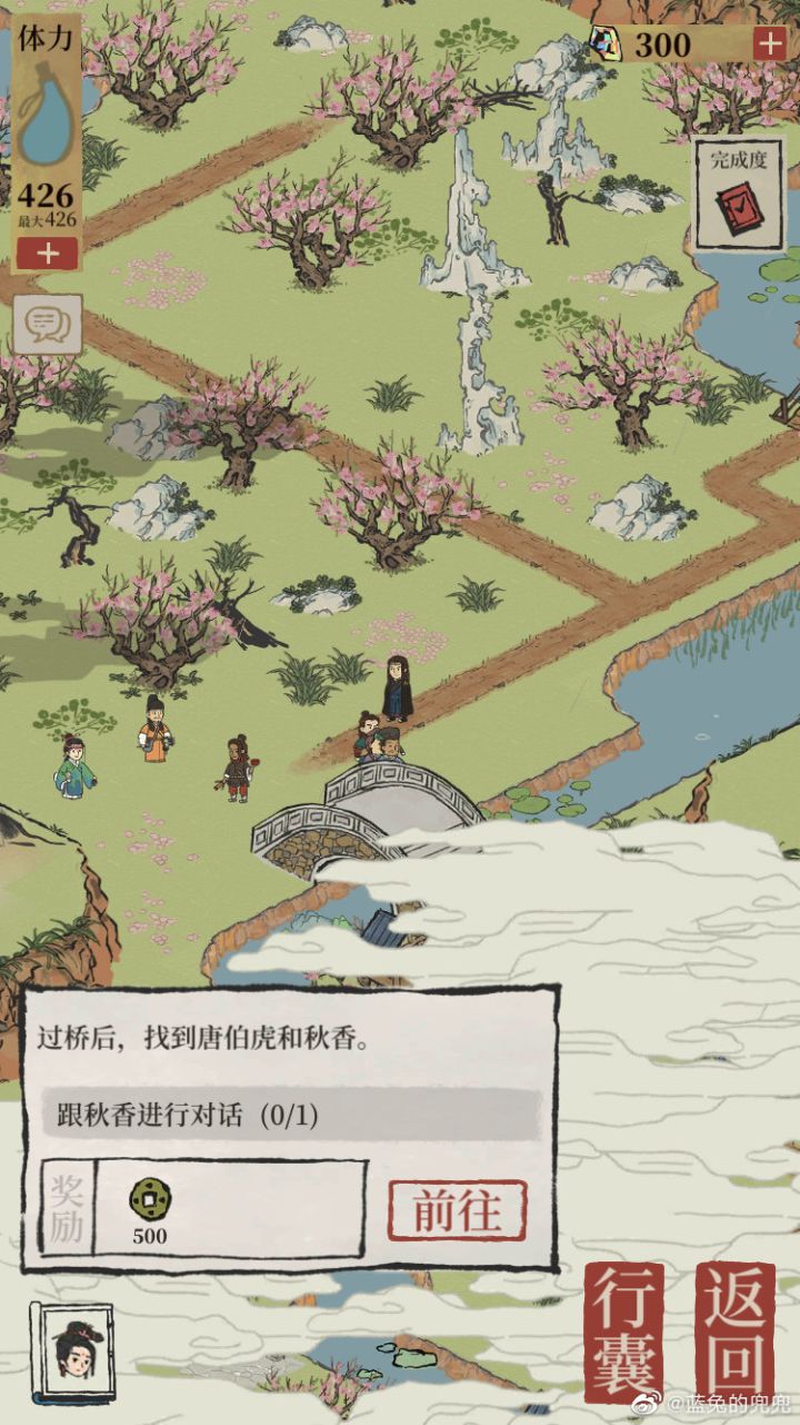 有没有大佬知道桃花坞任务六和仇英交完白石然后讲完去找秋香对话去不了有也迷雾去不了,怎么也过不去桥,我退出了n次都不懂怎么回事,也没有别的任务点让我做了。求好心人解答