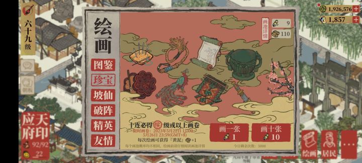 珍宝上半池子,40抽出了2天珍,玉算盘(谁的啊🌚),江南春图(文俶和江南春图都已经有过,又出一个我也舍不得融🙊)珍宝下半池子,13抽出了2天珍,节寰剑(谁的啊🌚),银杯(老文的)