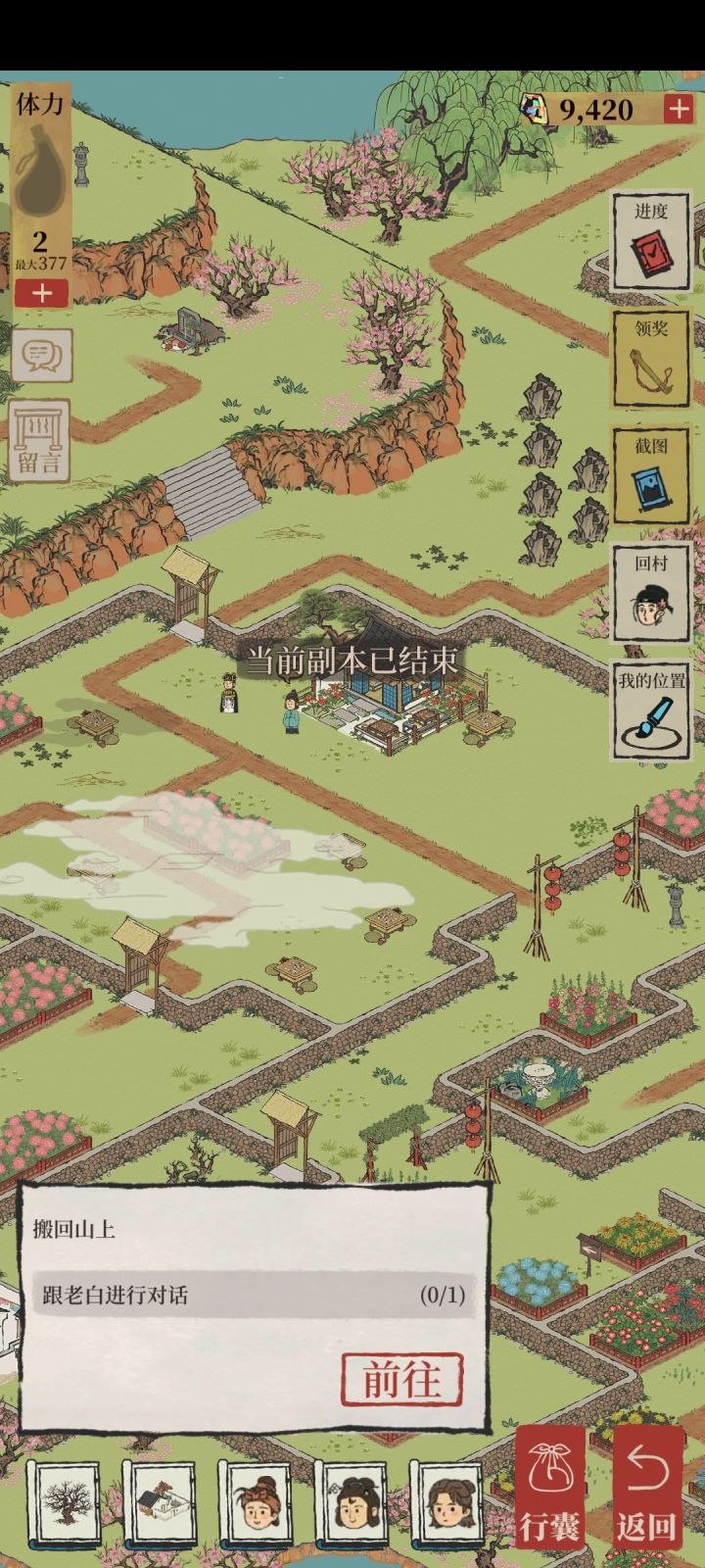 桃花村任务,没结算前进不了雾里,剩那个点灯任务做不了,说无法到达,进不了雾里,结算后雾消了,又去走任务,做到一半,说副本结束,还是做不下去,每次开桃花村都驱雾,驱了任务又完不成,很费体力啊啊啊啊,啊啊,到底是bug还是我做错了哪步啊!大佬帮帮我!#游戏讨论