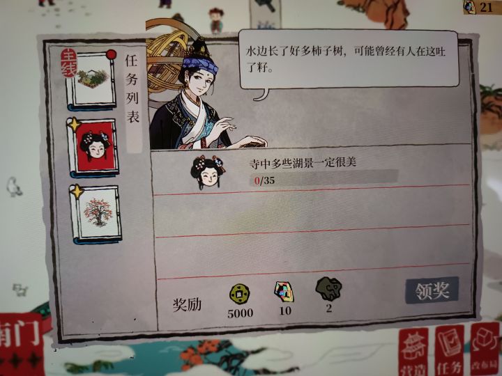 哎哟,姐妹们这个杭州府的长恨歌探险怎么过啊?我不小心和王叔把那个睡莲早早的换给他了,我没有给他提交15颗睡莲现在怎么办?我现在怎么凑也只有7颗凑不够15个。😭