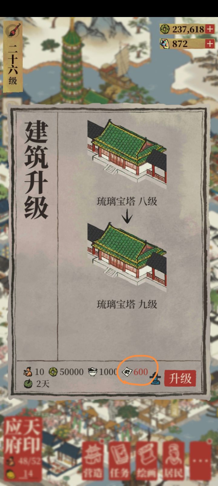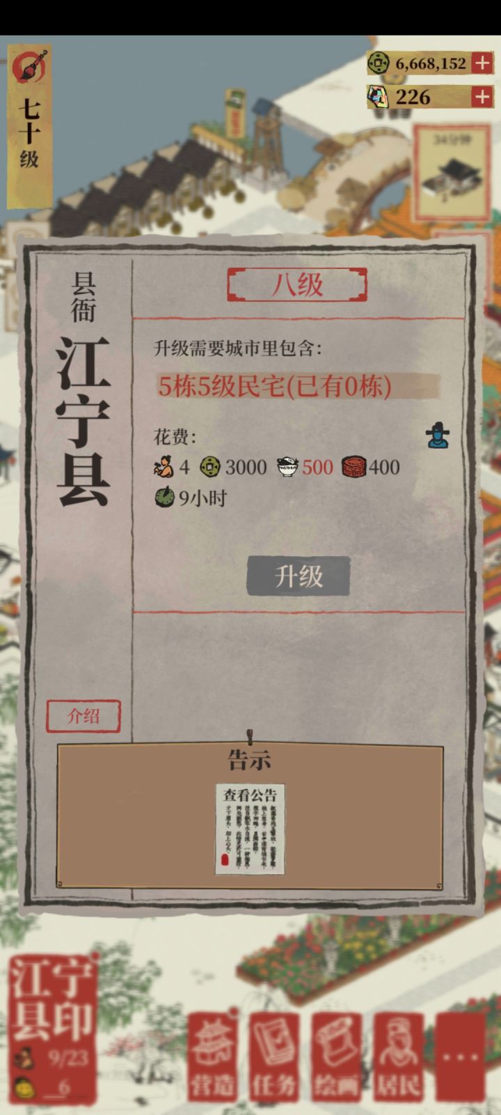 江宁县衙有必要升满吗,8升9要5个5级民宅,1个民宅4升5要50补天石。#游戏讨论