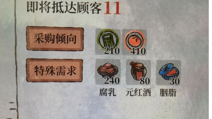 比如采购倾向里面的410,包括特殊需求里面的240和80加起来吗,还是单独需要的410