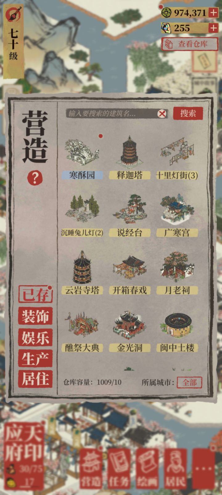 强烈建议搞一个建筑清单什么的,不只是摆出来建筑,还有已存里的,就像是人物的图鉴,有个整个的表。建筑多了真的记不住自己有那些建筑,在哪里放着……还可以出一个搜索功能吗?想找什么直接搜!