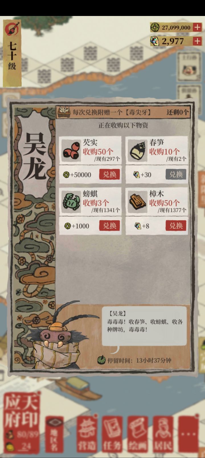 突然有点不想玩了,开地要好多铜钱,铜钱不好挣啊😓