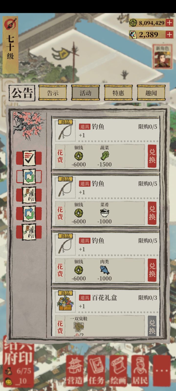 呜呜,按照大佬们说的卡富商,结果卡到富商之后忘记把柜子转过来,富商啥也没买就走了😐,哭哭。