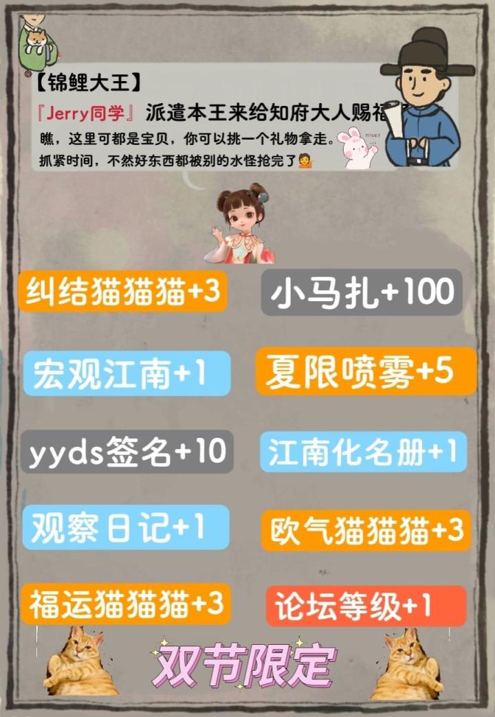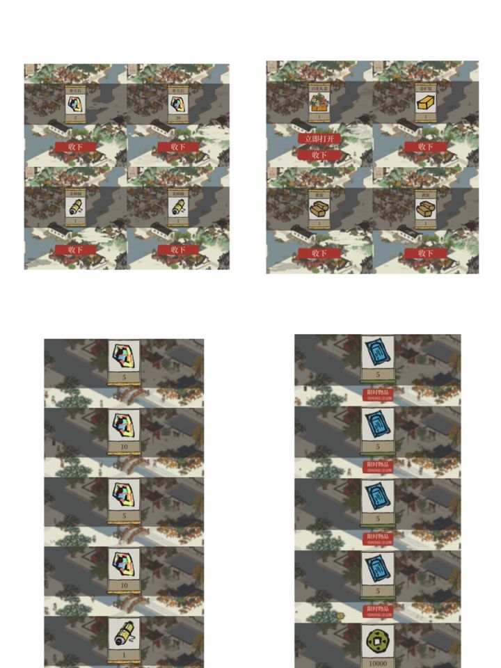补天石65;金画轴3;黄泥2;百花礼盒2;金矿锭1;周加速卡4;10000铜钱1。(差10补天石和1百花礼盒未及时截图)ps:目前已知的是固定玩家群里有其他好运大人抽到10个金画轴和2个建筑画轴的,社区里也有看到抽到6个金画轴的,希望有其他收获的大人们来分享好运~🍀