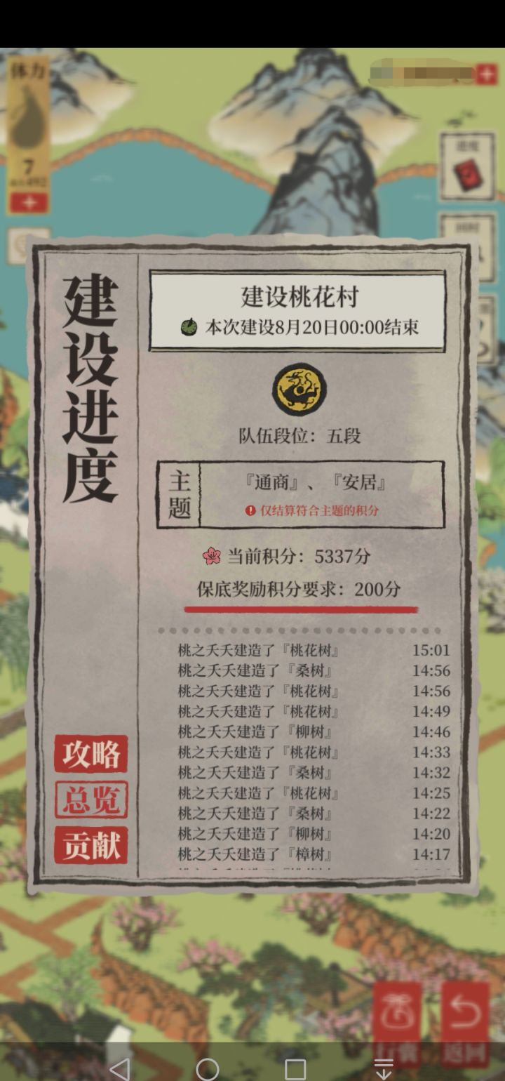一个人玩转桃花村。那两个队友“废的”。努力开发新玩法。😸有个疑问:今天我领了3w6铜币,贡献第二的领了3w4铜币,贡献最少的领了3w8铜币。为什么为什么为什么!😹