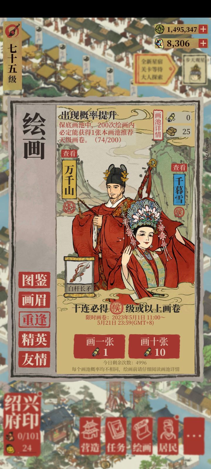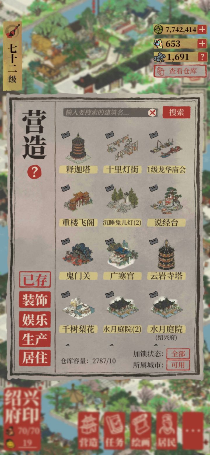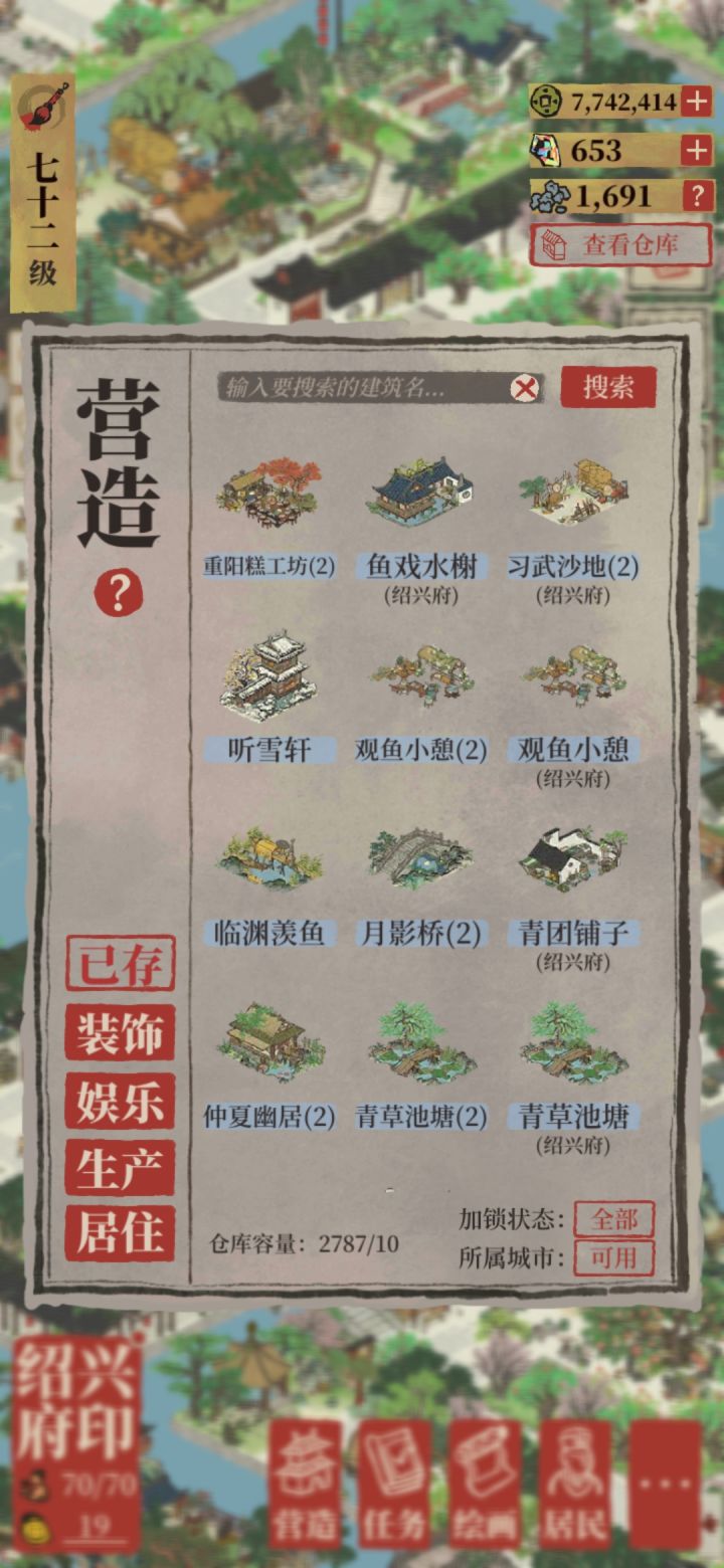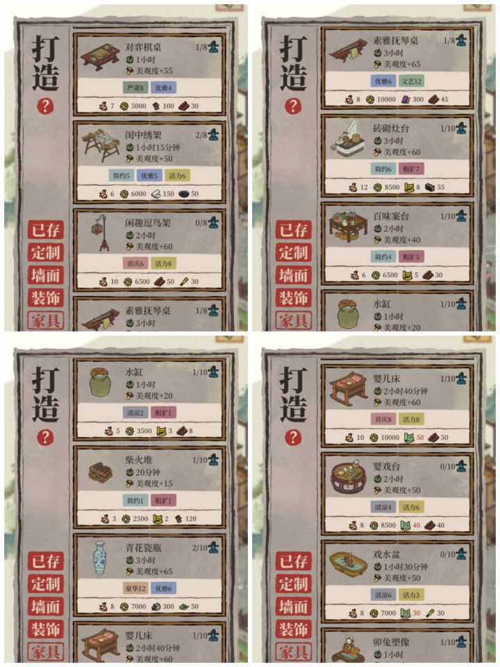绍兴商铺太肝了,如无必要不建议玩。以前是江南百井图(应天苏州水井),现在是江南百具图(绍兴家具)。一个号都磨人,两号……为肝而干,真没必要~城越开越多,人物越来越多,快乐缺越来越少,唉绍兴收入了约2w银,路才走一半,汰