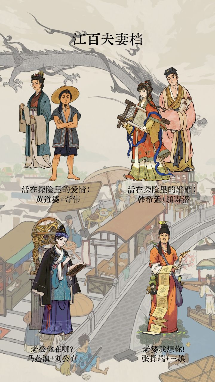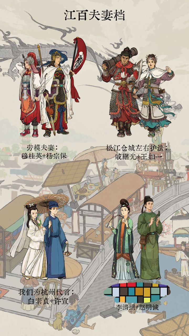 无聊做了一个玩梗盘点【江百夫妻档】,必须是在正史、戏说、文学作品或者是官方设定/人物介绍里有夫妻之实的,必须和特殊居民有关,单纯的cp不行(王昭君和呼韩邪单于这种和亲向的就不放入了)。三娘是张大爷永远的遗憾,刘公直就算来也只会改名,奇伟已然离世,还是昨天那句话,官方看到的话,贺瑞年(顾寿潜)你就实装一下吧!按照评论的方法试了试,李清照和赵明诚被夹了,不过这一对不用我盘点大家也知道什么情况😁