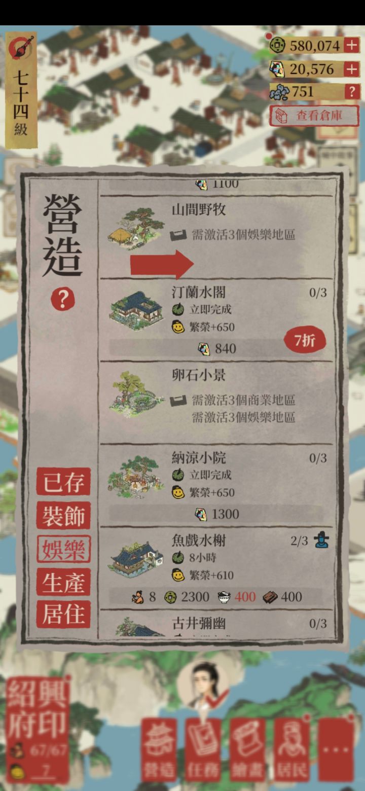 任务:建山间野牧↓需要:还差第三块娱乐地↓选中:下面这块最贵的九百万的贵宝地↓攒完钱攒完饭叫完人开完地需要:激活这块地↓激活方式差一个→山间野牧↓任务:建山间野牧。。。循环开始。。。啊我怎么脑袋抽了开个这块地啊!😂没仔细看激活条件,就单纯想攒个大的,一口气把攒很久的钱花光很爽。