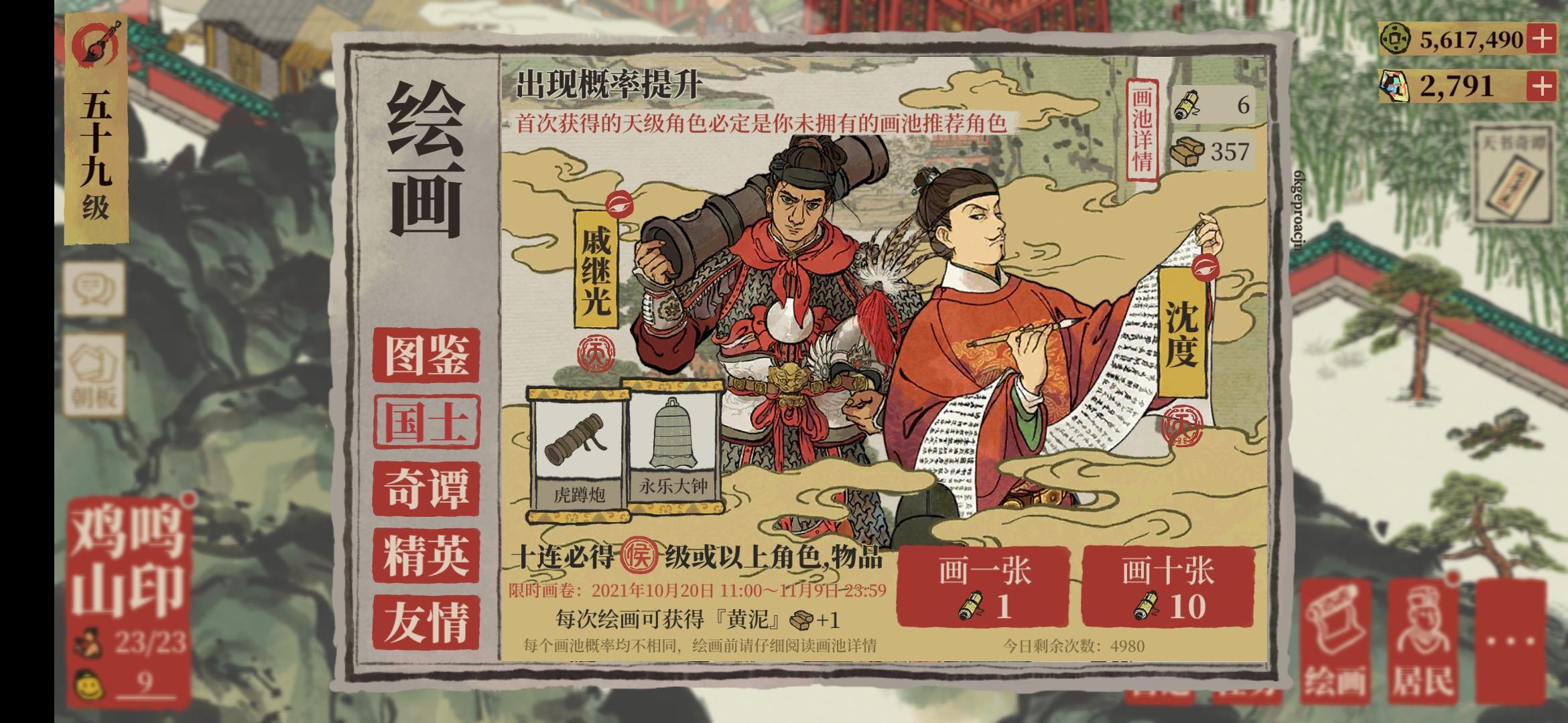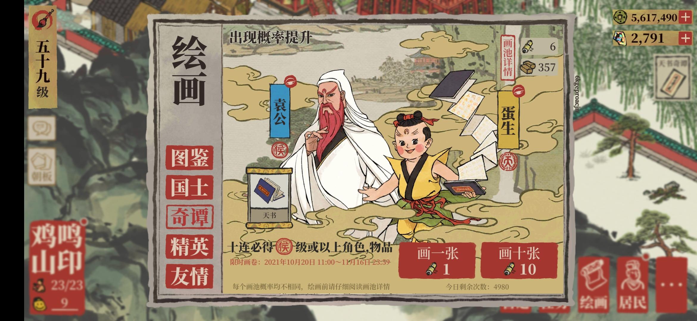 现在一共有20个天,一共抽了500次,平均25金卷轴抽一个天。太难抽新的居民了😂