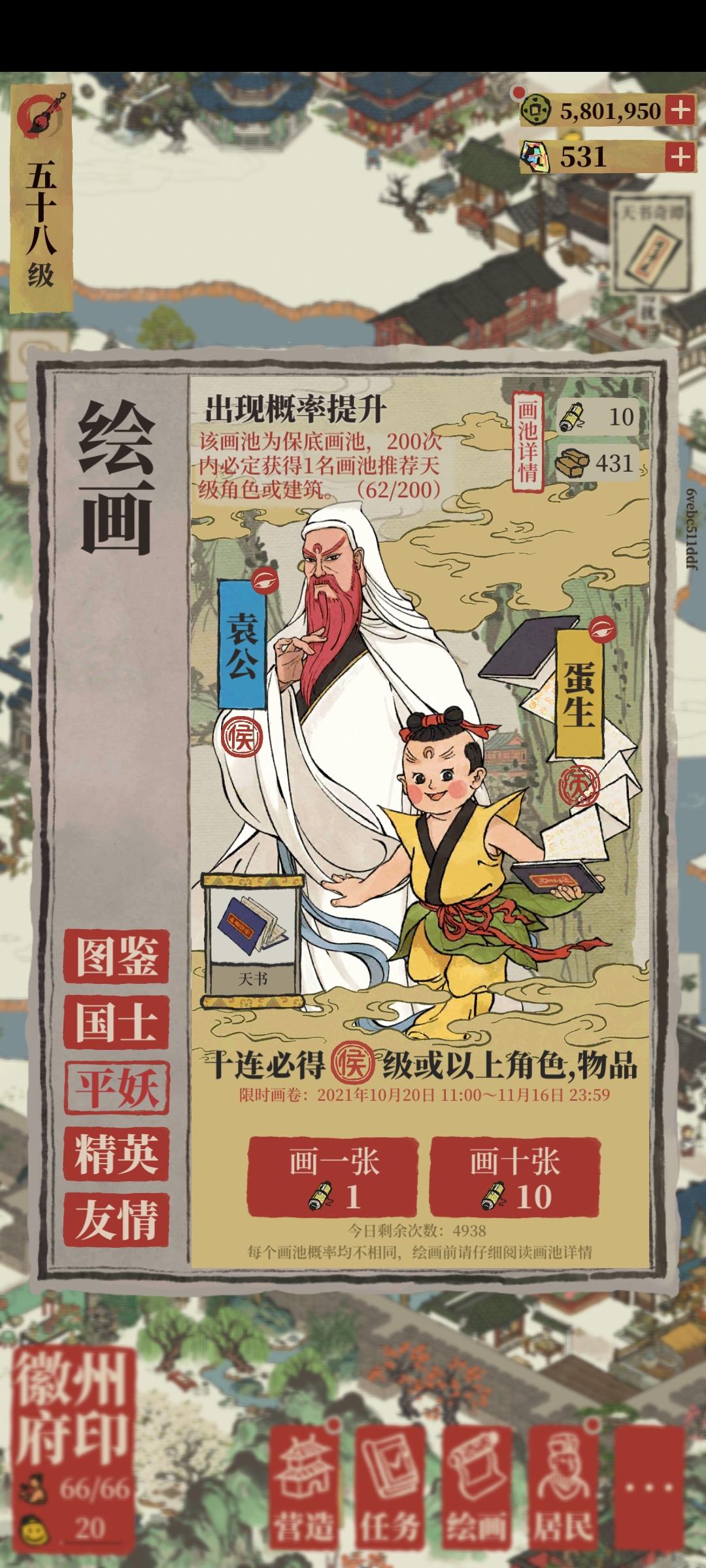 Nice! 超开心,新人物-沈度get(节省了一个天级兑换券)!联动画池的新角色今天全都收入囊中了,遥想自己抽非人哉的联动画池,那叫一个“非”,至今也就有个龙女和红孩儿,啊,还有个胡萝卜牙雕的道具(小玉都没有,要它何用)。现在这种爆率不错,江百要好好保持呀,要是让玩家手太非的话,会没有兴趣氪金的。