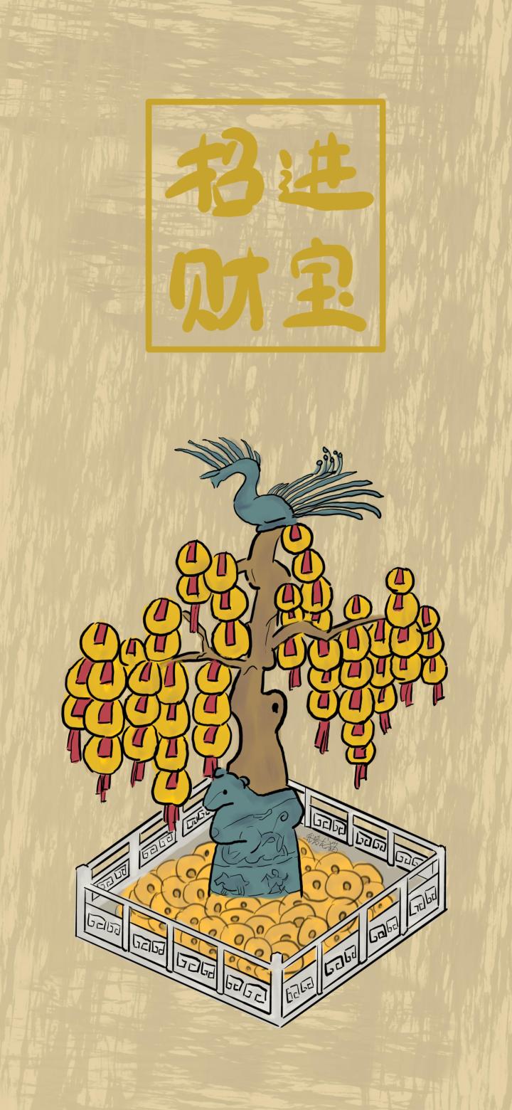 【许愿壁纸】手绘·沈周和招财树的招财进宝组合